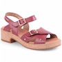 This women's sandal has a casual look and feels great. It combines an adjustable hook-and-loop strap with a decorative buckle