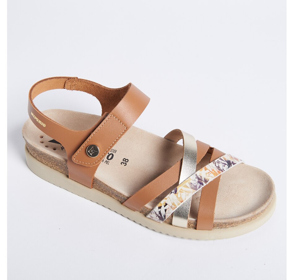 The Halinka backstrap sandal featuring a soft nubuck leather upper, an adjustable strap over the instep with hook and loop closure, and a suede-covered cork and latex footbed that molds to the shape of the foot over time to provide proper support. They also use an integrated Soft-air® technology for tireless walking comfort.
