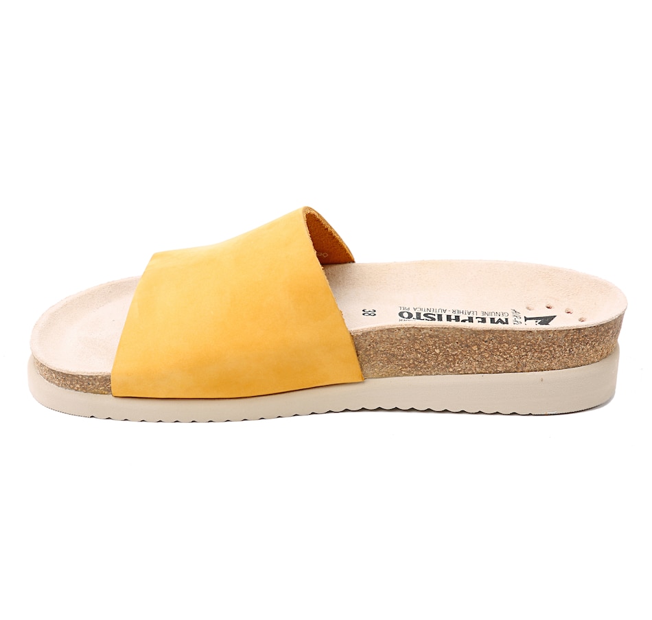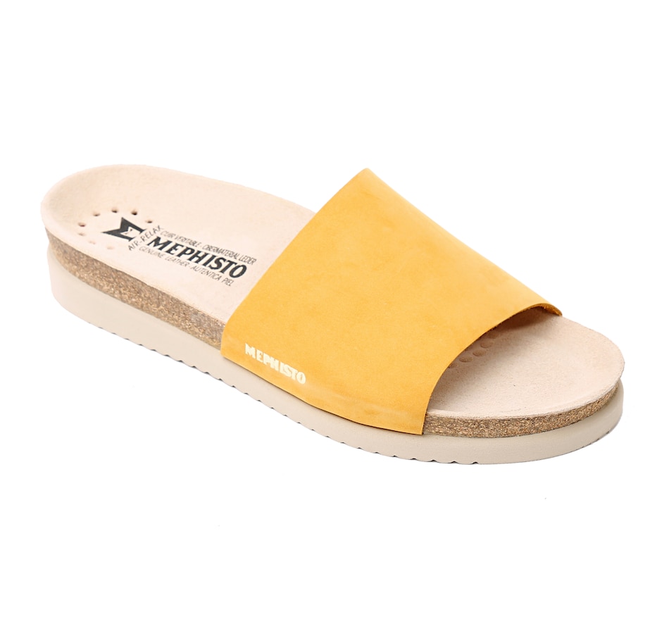 Take your sandal collection to the next level with this beauty from Mephisto. Featuring a suede-covered cork footbed, the Hanik is made in the finest full-grain leather inside and out. A shock-absorbing rubber outsole reduces pressure on your feet, back and legs! Perfect for the office or a nice park date, thanks to its walkable heel height.