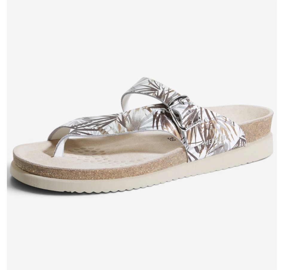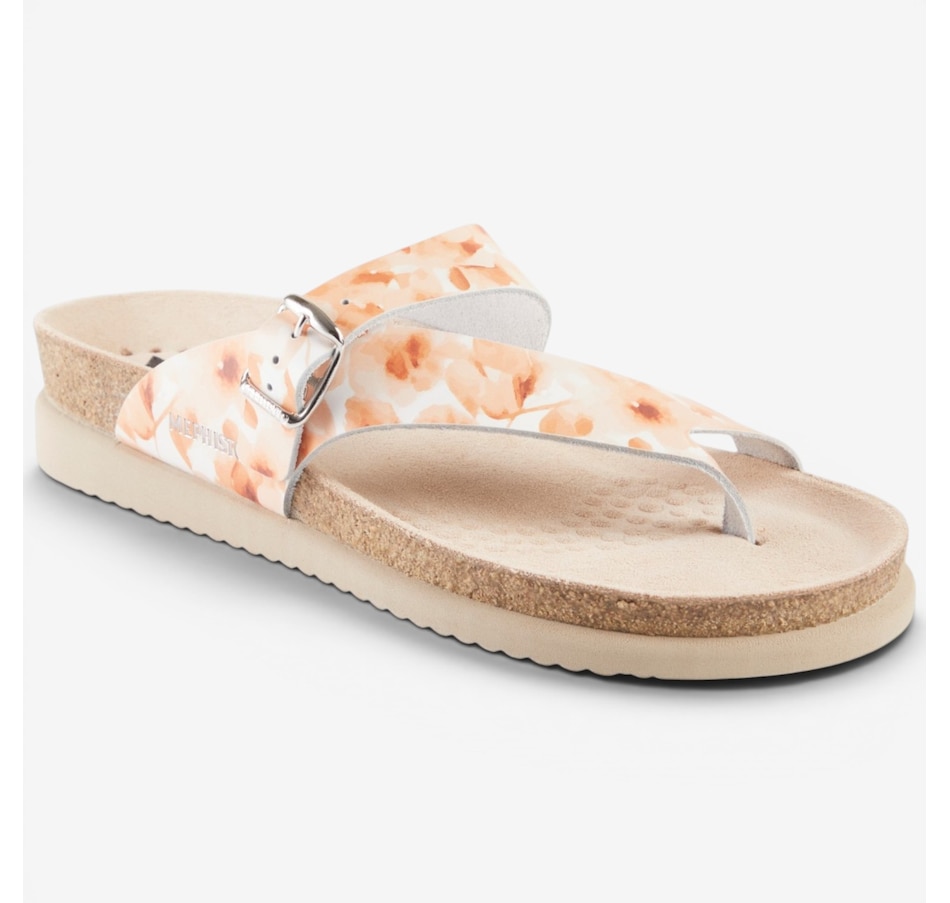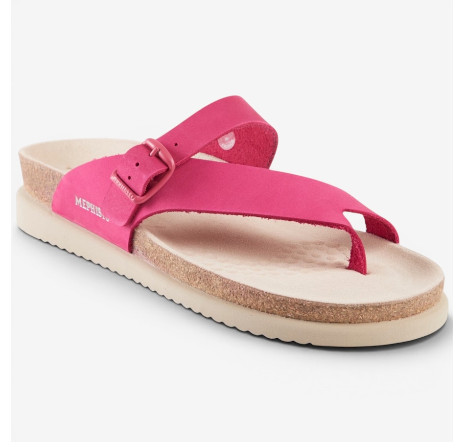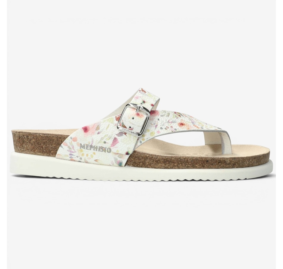 Mephisto's stylish Helen provides an elevated level of comfort. It is designed with an anatomically correct footbed, cork midsole and multi-layered footbed with Soft-Air technology. There's also an adjustable instep strap for a secure fit. The thin toe post helps eliminate irritation, and its rubber outsole absorbs shock and reduces stress put on your feet, legs and back.