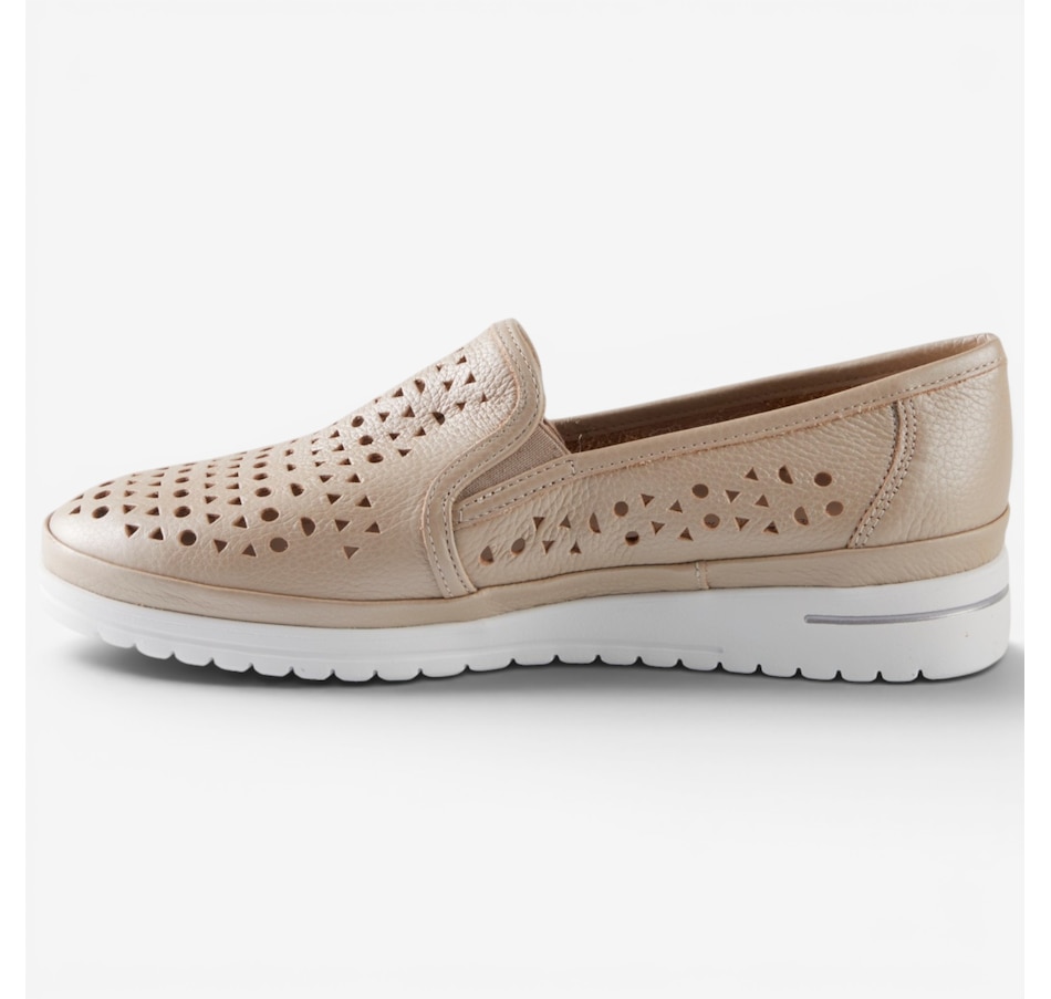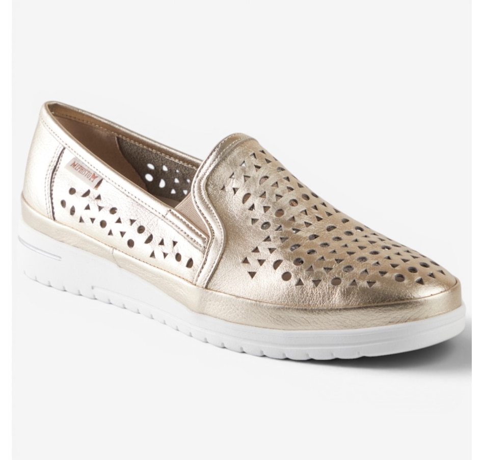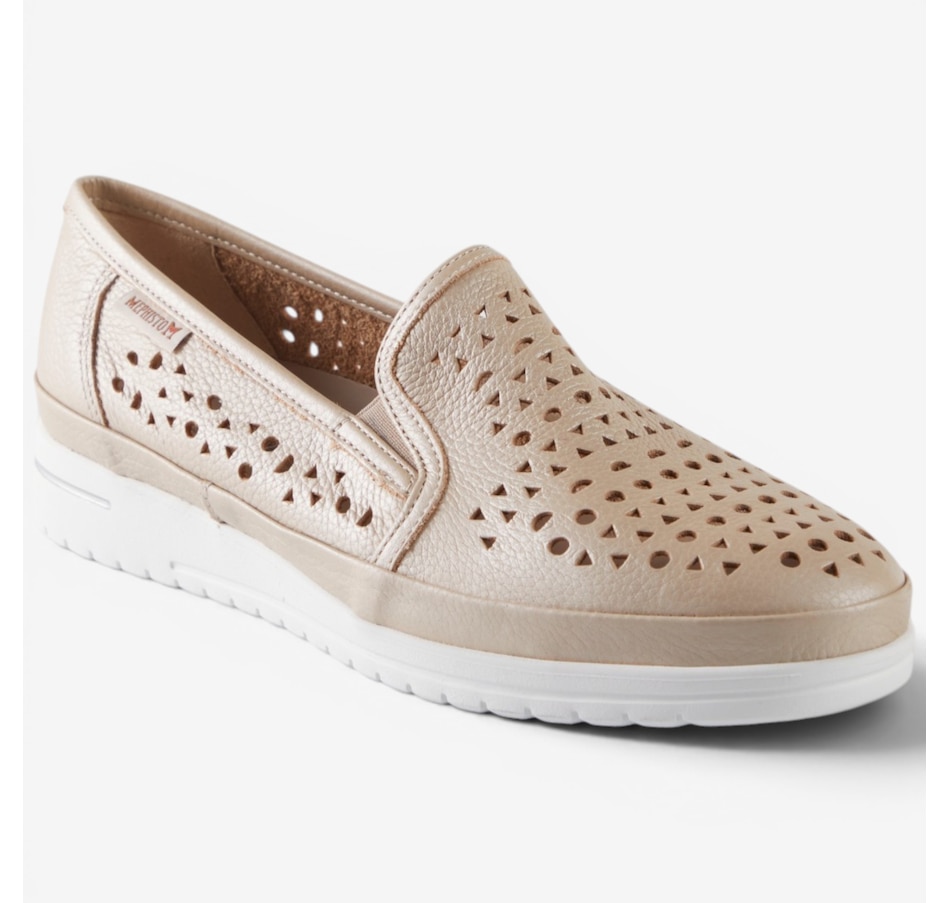 Slip into effortless comfort and everyday ease with the Jana slip‑on shoe, designed for a relaxed look with premium support. Finely perforated for breathability, this casual style delivers an excellent fit thanks to elastic side panels that gently adapt to your foot. Built with Mephisto’s Soft‑Air midsole and an integrated shock absorber in the outsole, it helps minimize impact and promotes a smooth, gentle walking experience. The Air‑Relax technology supports the natural anatomy of the foot to help prevent fallen arches, while the real leather lining adds a luxurious feel inside. Finished with a flat heel and a removable footbed, the Jana is a versatile, comfort‑driven shoe made for all‑day wear.