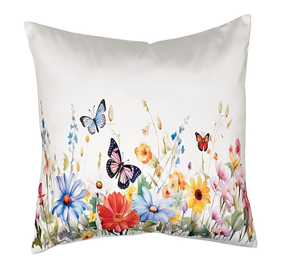 Refresh your home for spring with the Mera Linens Floral Butterfly Printed Cushion. Featuring a vibrant floral and butterfly design, this 18-inch-square cushion adds a fresh, cheerful touch to your décor. The soft polyester fill offers cozy comfort, while the hidden zipper provides a seamless look.