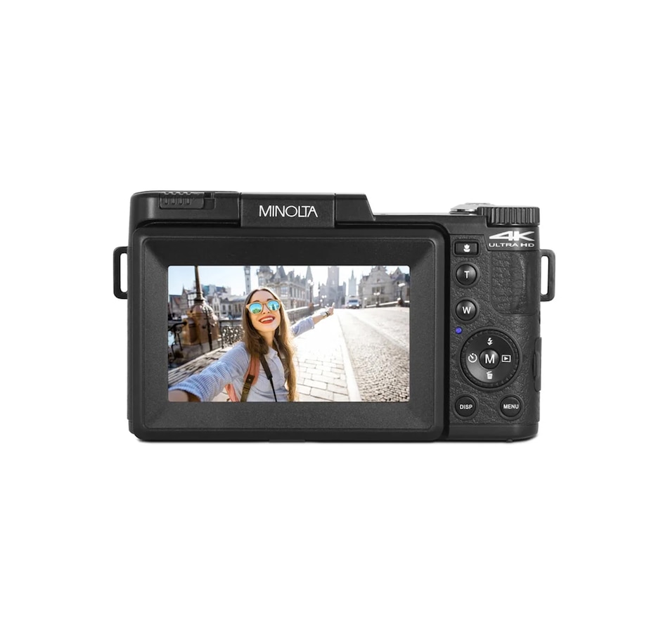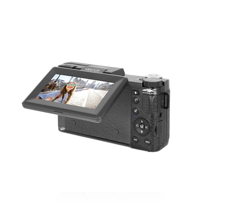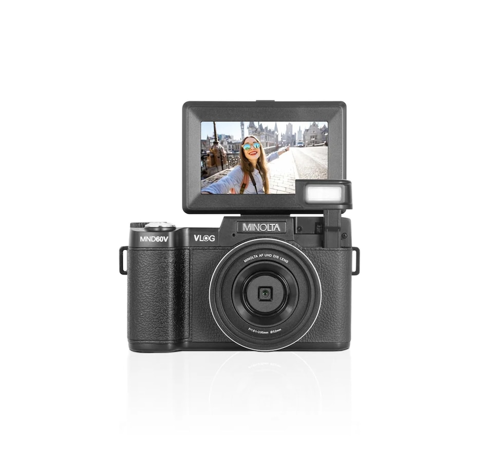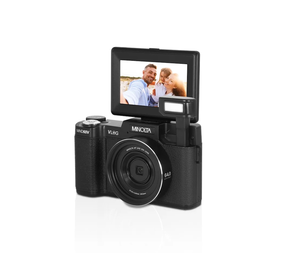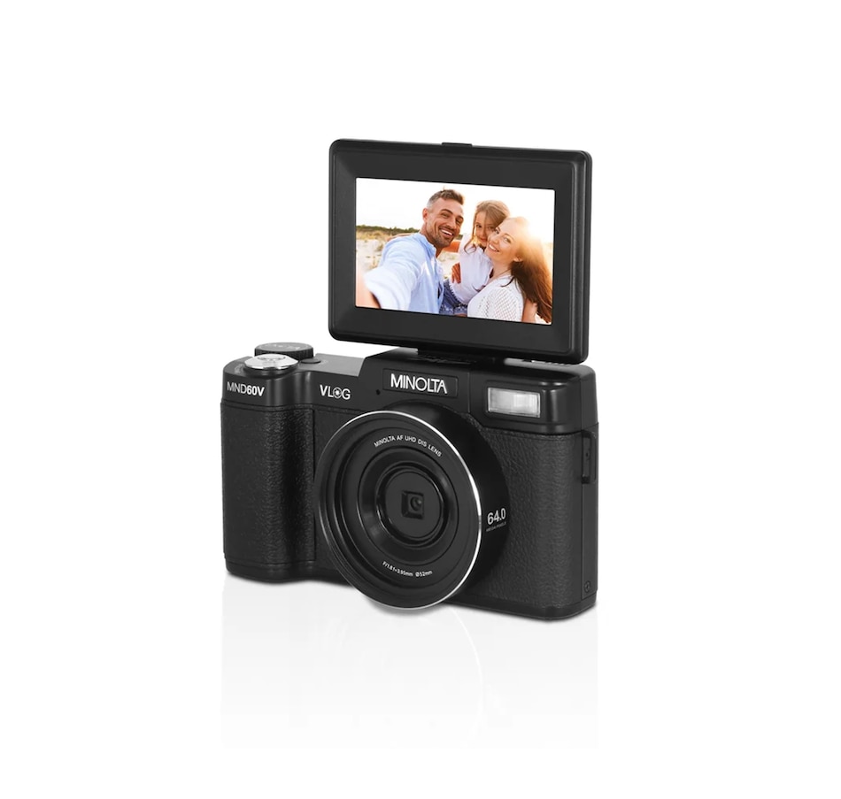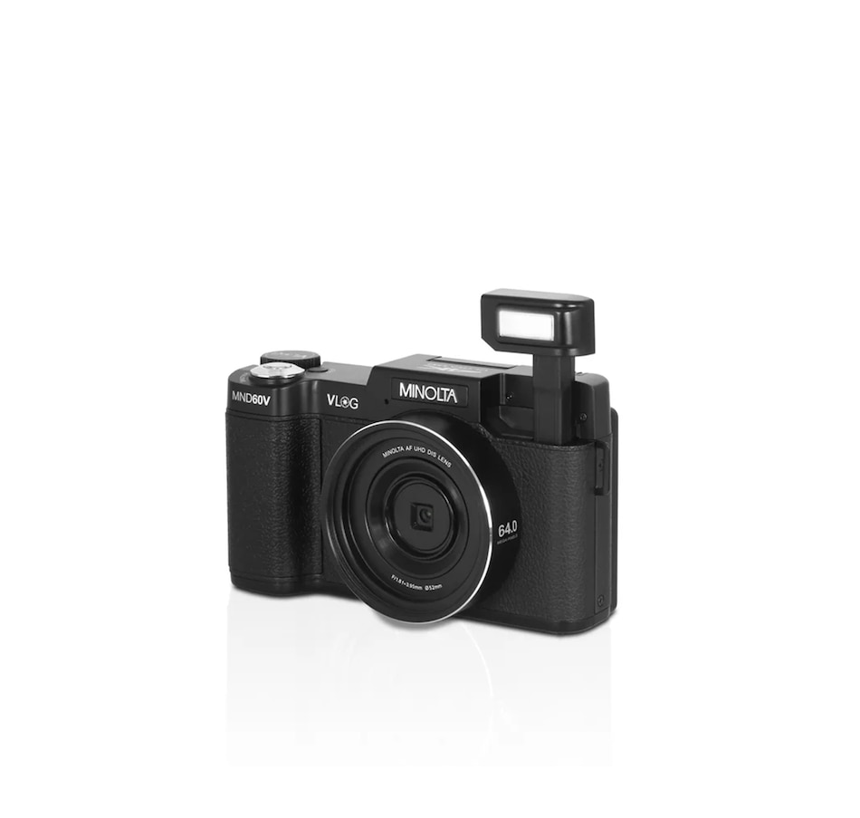 The MND60V from Minolta is a robust digital camera with high-end features packed into a point-and-shoot package. Capture 64-MP photos and 4K UHD video with ease using the 16x digital zoom lens and three-inch IPS LCD monitor, and rotate the mode dial to enable the perfect settings for any scene. You can also shoot close-ups in vivid detail and clear focus using Macro mode with ISO 6400.