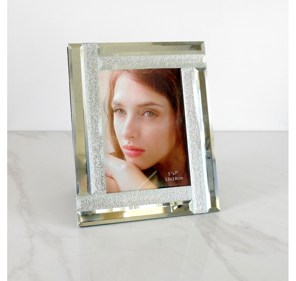 This mirror photo frames are perfect to show your memories and turn your everyday photos into a spectacular art display!.It's perfect beveled silver mirror combine with silver bead frame, show us a beauty of vintage style and modern fashion. .Protect your valued collection and memory from damage.Photo Size: 5 x 7".Size: 8 x 10 x 0.5"