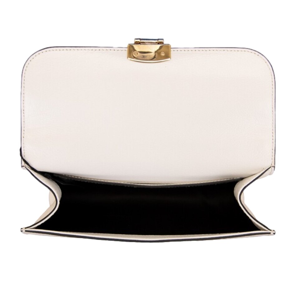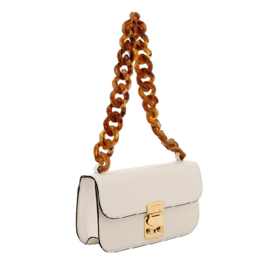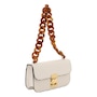 Exuding fresh sophistication, the Miu Miu Madras Handbag is crafted from supple white leather and accented with a distinctive tortoise shell chain for a modern statement. Its refined silhouette and luxurious textures create a striking balance of elegance and contemporary flair. A versatile piece designed to elevate any ensemble, this handbag captures Miu Miu’s signature sense of playful refinement.