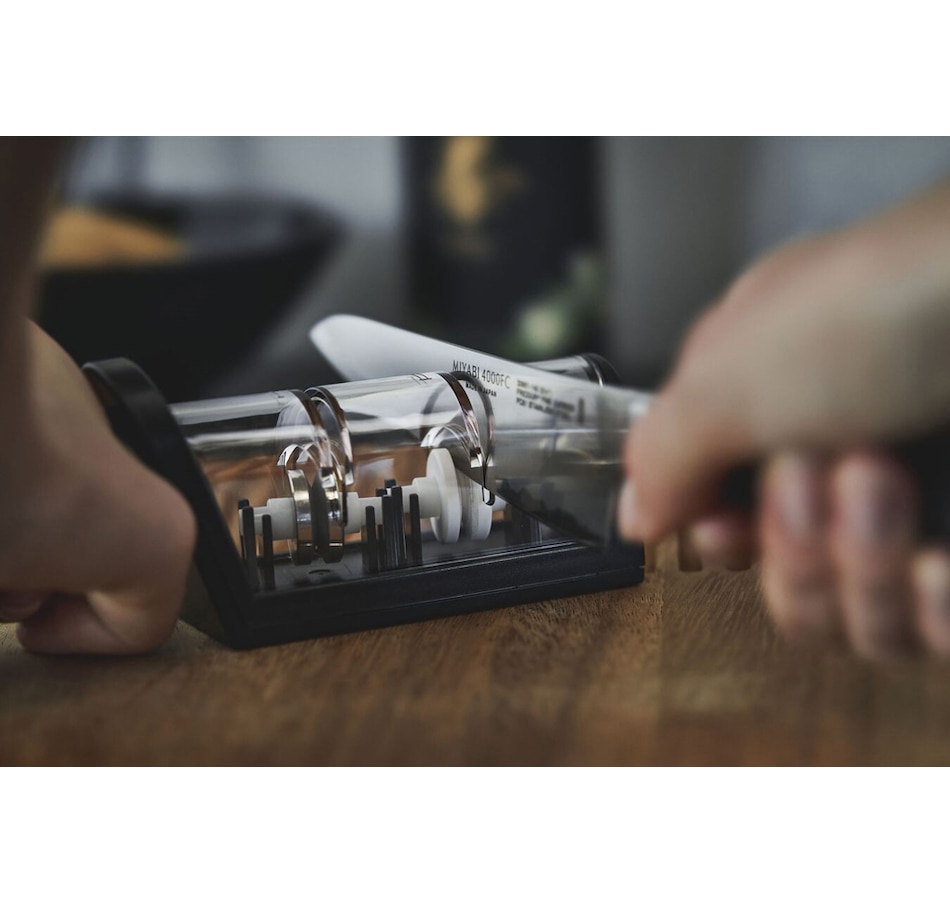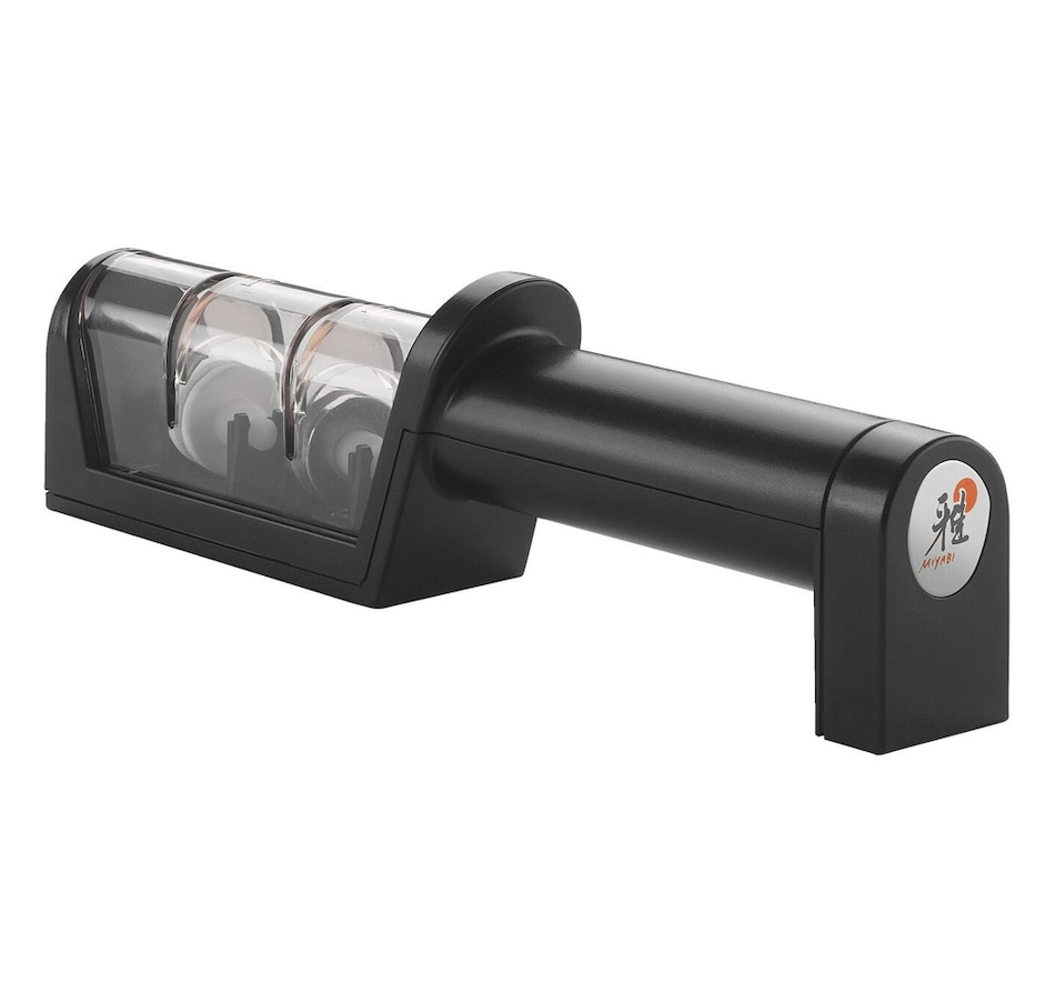 The ergonomic handle is made from easy-care plastic and can be comfortably held by both left-handed and right-handed chefs. This knife sharpener can also be used to sharpen non-serrated knives made from different steel types, as well as knives from the Miyabi range. With this Miyabi knife sharpener, sharpening your knives couldn't be easier.