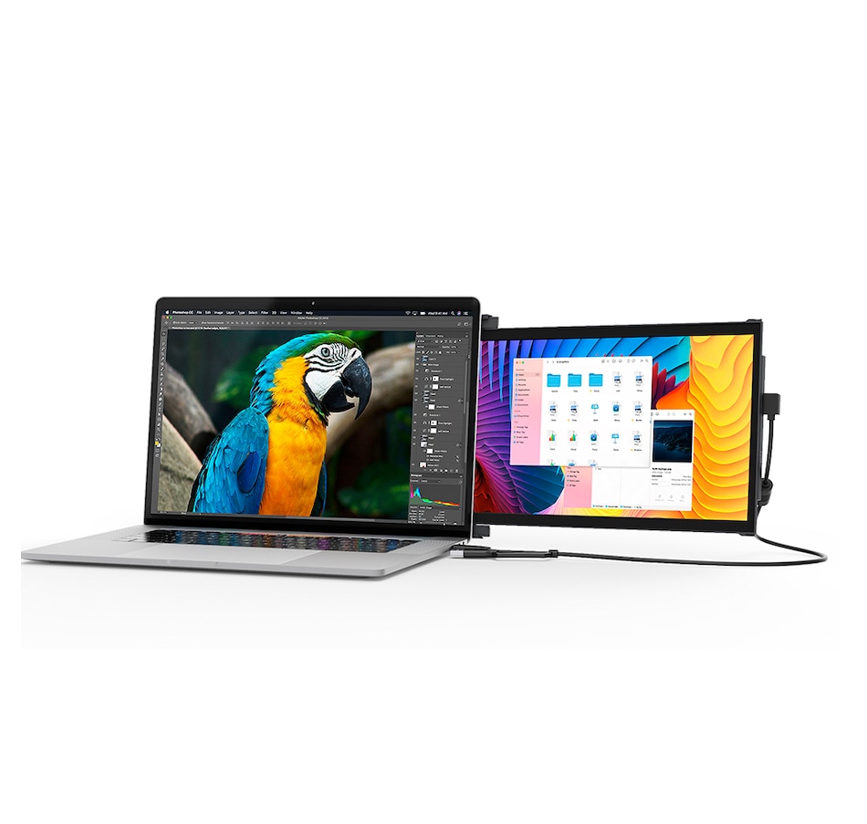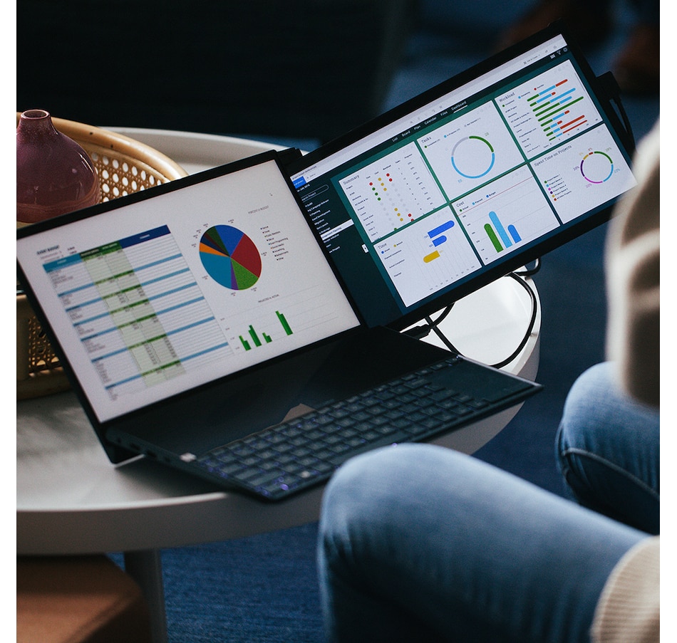 Whether you're working from home or in an office, Geminos is going to change your work set-up! It has a built-in 1080p webcam, powerful speakers and a USB docking station, and it's also infinitely adjustable, unlike other dual desktop monitors. Geminos displays are stacked from top to bottom, so the display area is closer to a square aspect ratio, and you can comfortably use both monitors without ergonomic setbacks. The top monitor slides up and down, and the bottom monitor pivots in and out to create an angled visual appearance.