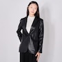 Finish your fall look in elevated style wearing this beautiful faux leather one button blazer from Modern Identity.