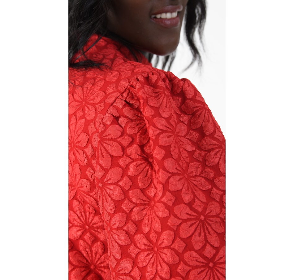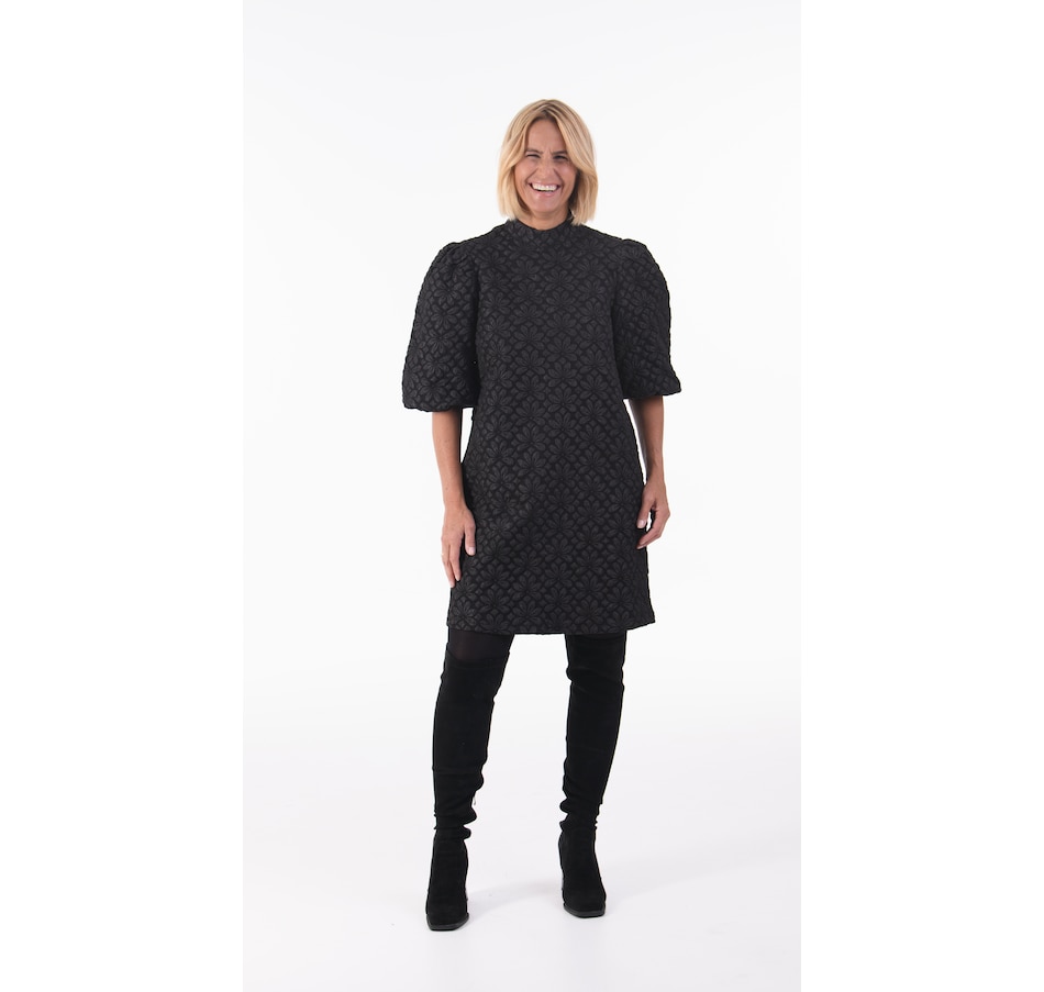 You'll add to your wardrobe in beautiful, standout style with this jacquard puff sleeve dress from Modern Identity.