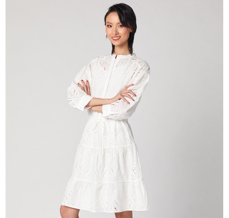 Add something stylish and versatile to your new seasonal look wearing this beautiful mock collar 3/4 sleeve dress Modern Identity.