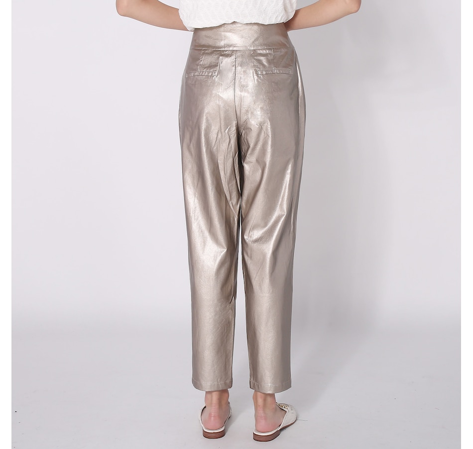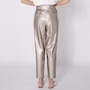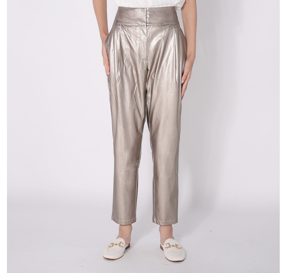 Pleated Front Metallic Faux Leather Pant With Side Pockets