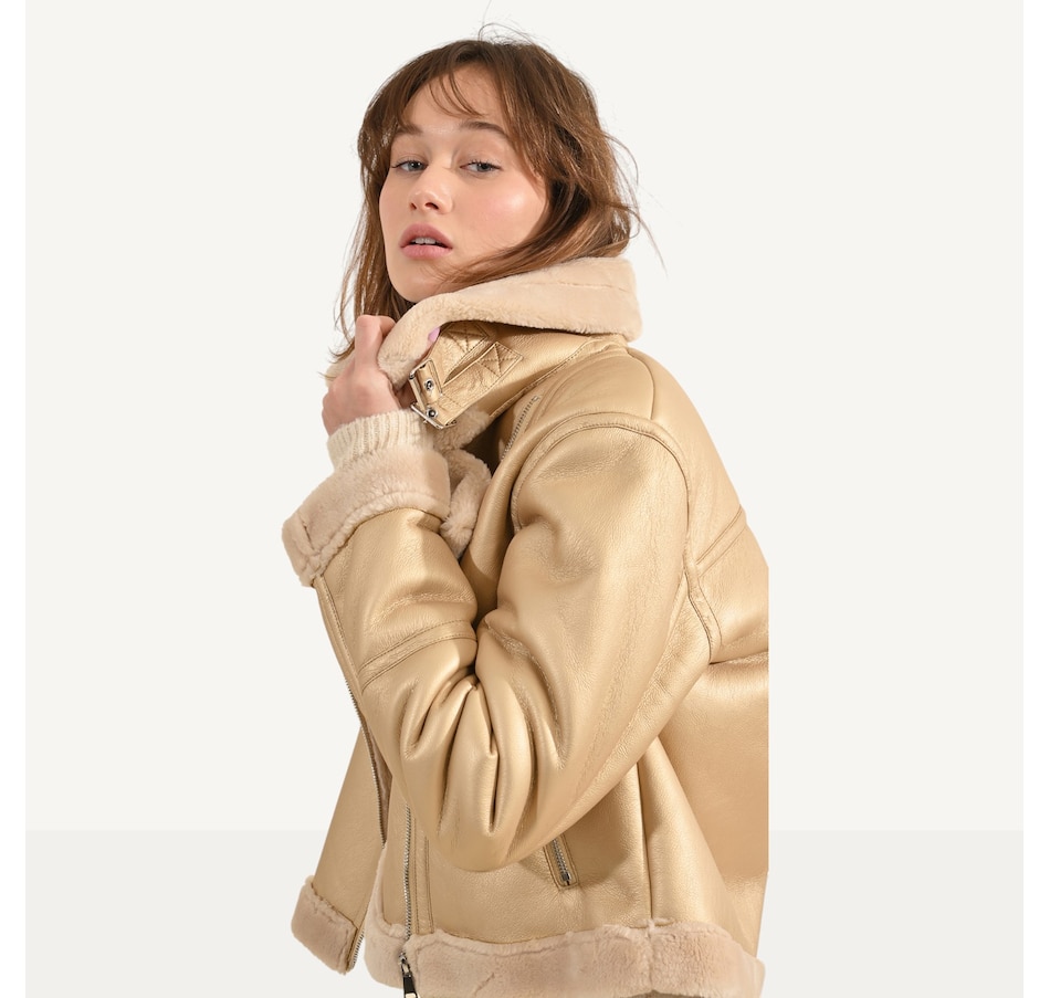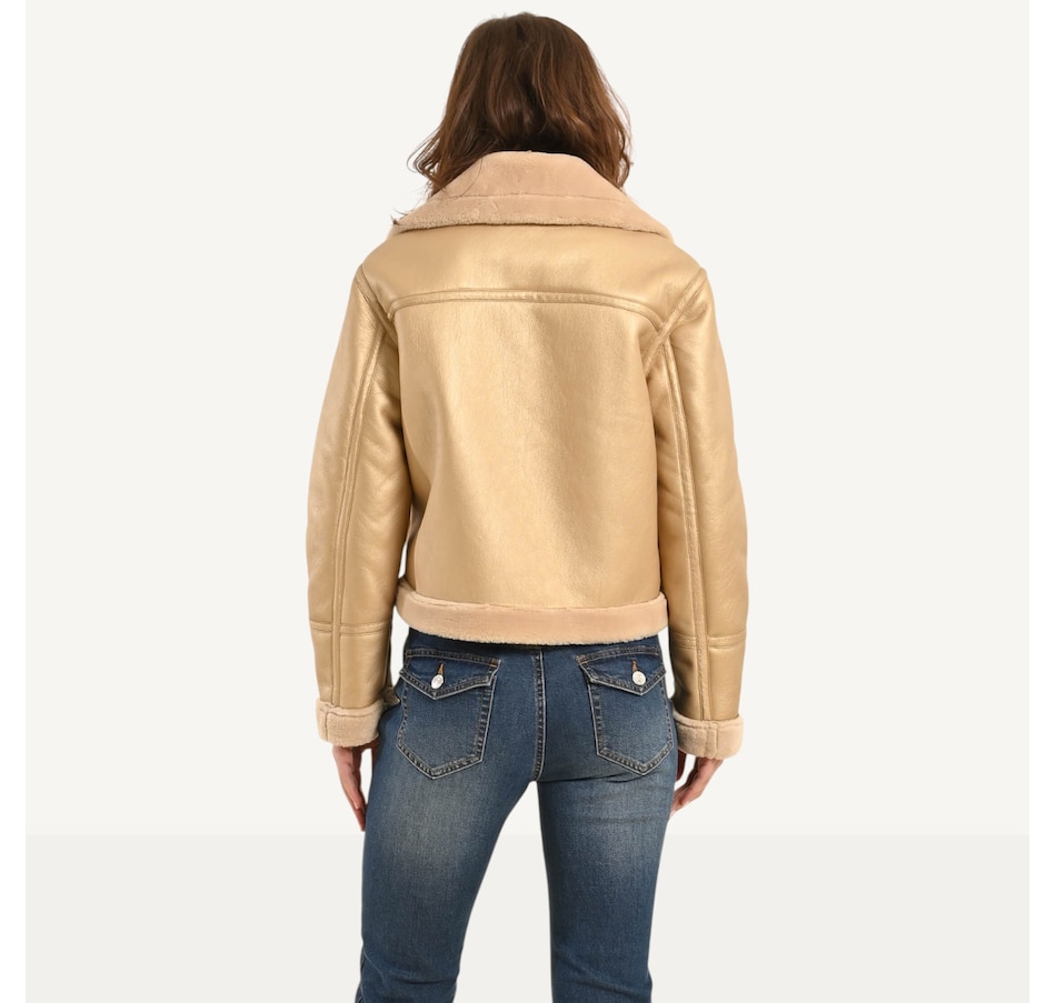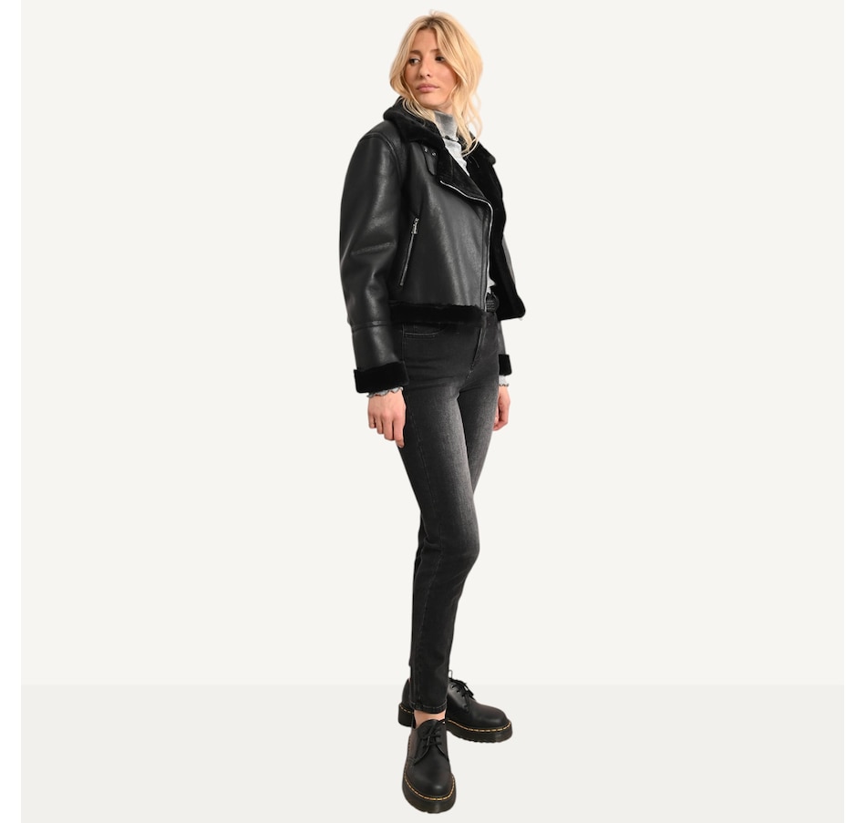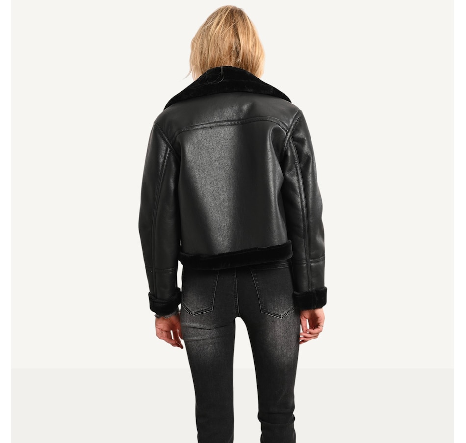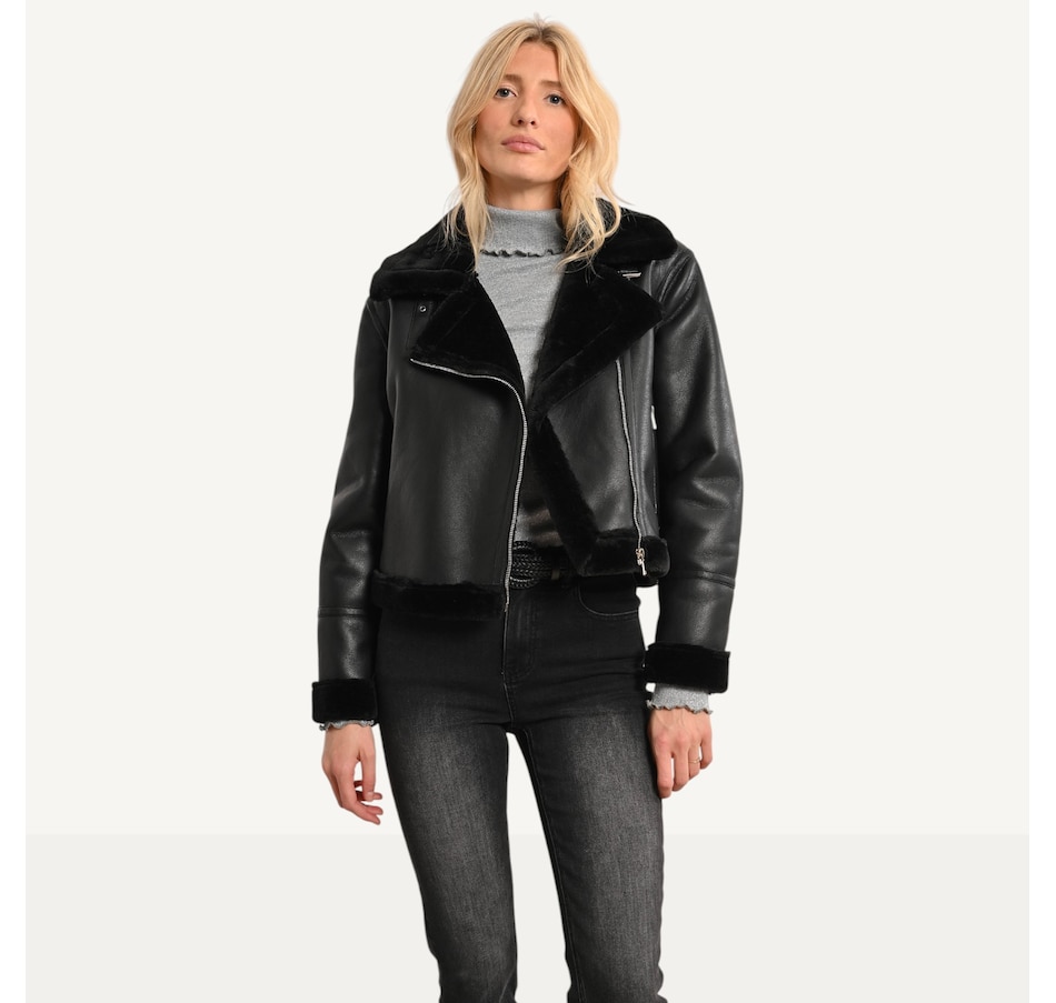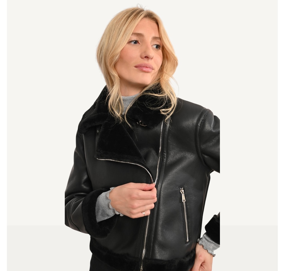Enjoy edgy style and luxurious comfort with this biker jacket from Molly Bracken.