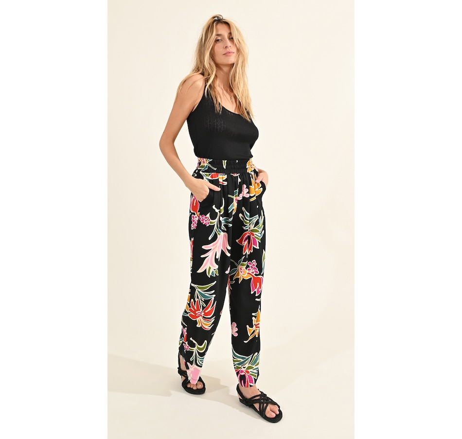 Comfortable and vibrant, you'll elevate your look in style with this woven printed pant from Molly Bracken.
