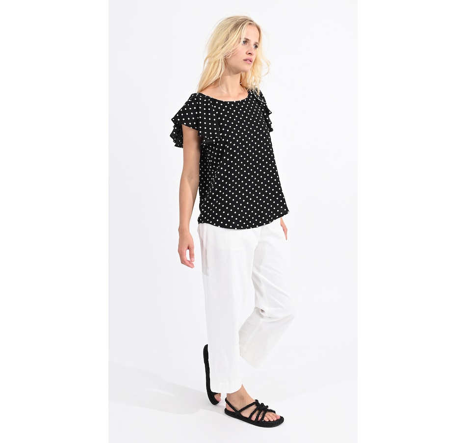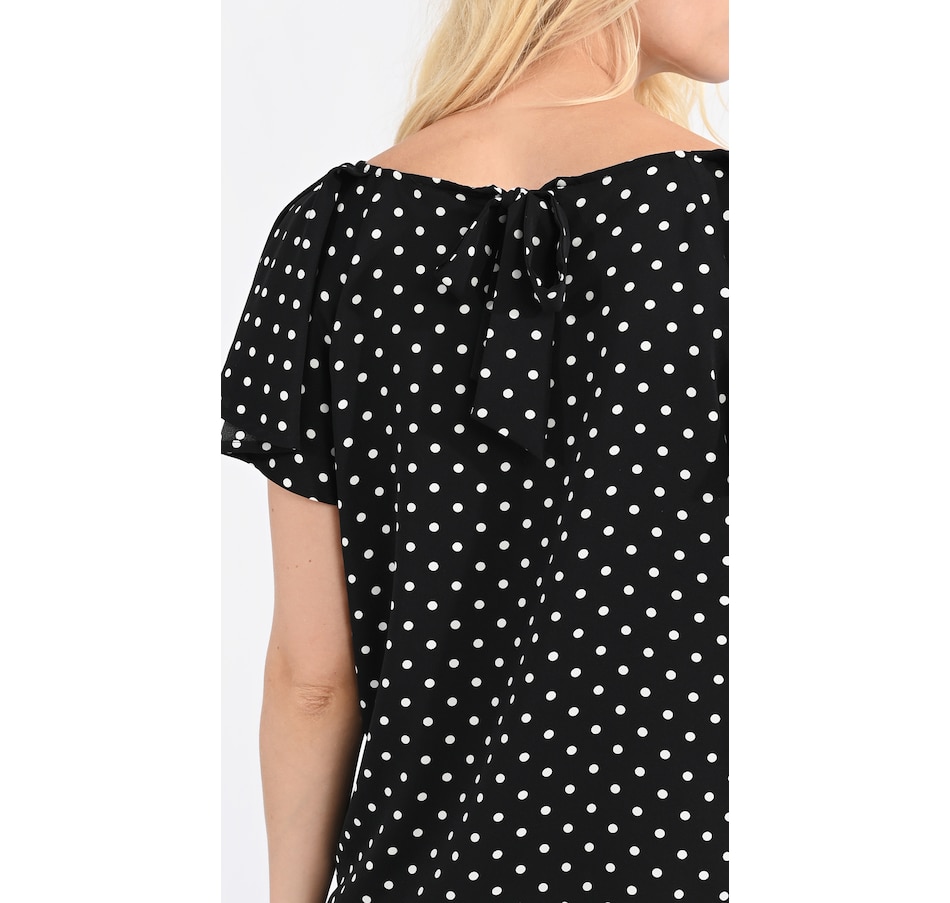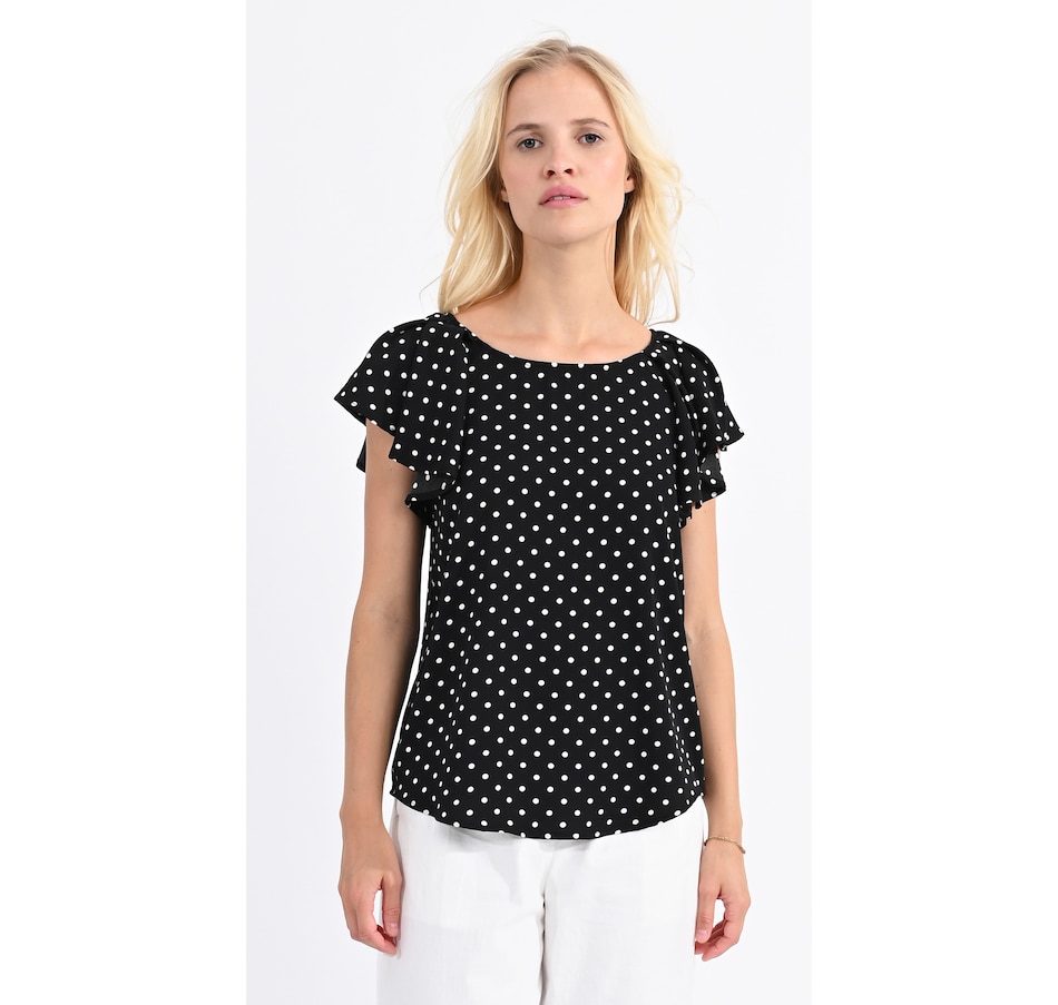 Classic and versatile, you'll centre your look in style with this polka dot flounce sleeve blouse from Molly Bracken.
