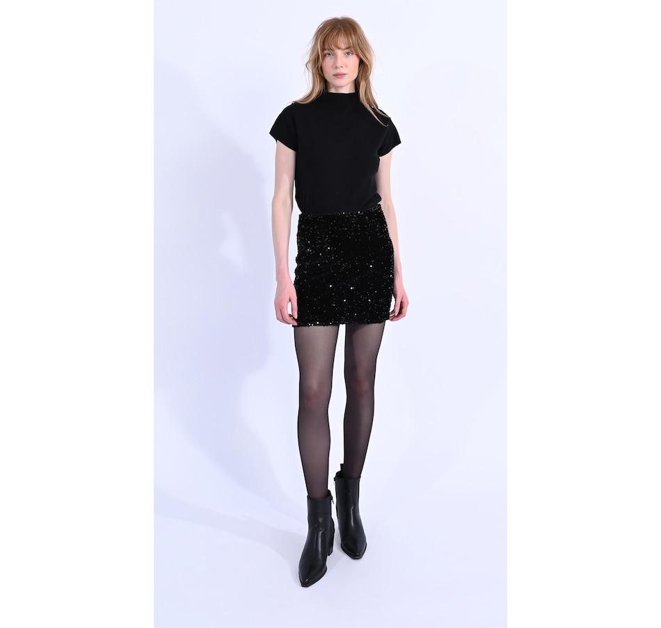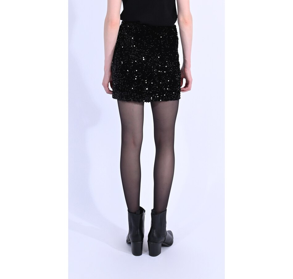 Add something flirty and fashion-forward to your look with this sequin mini skirt from Molly Bracken.