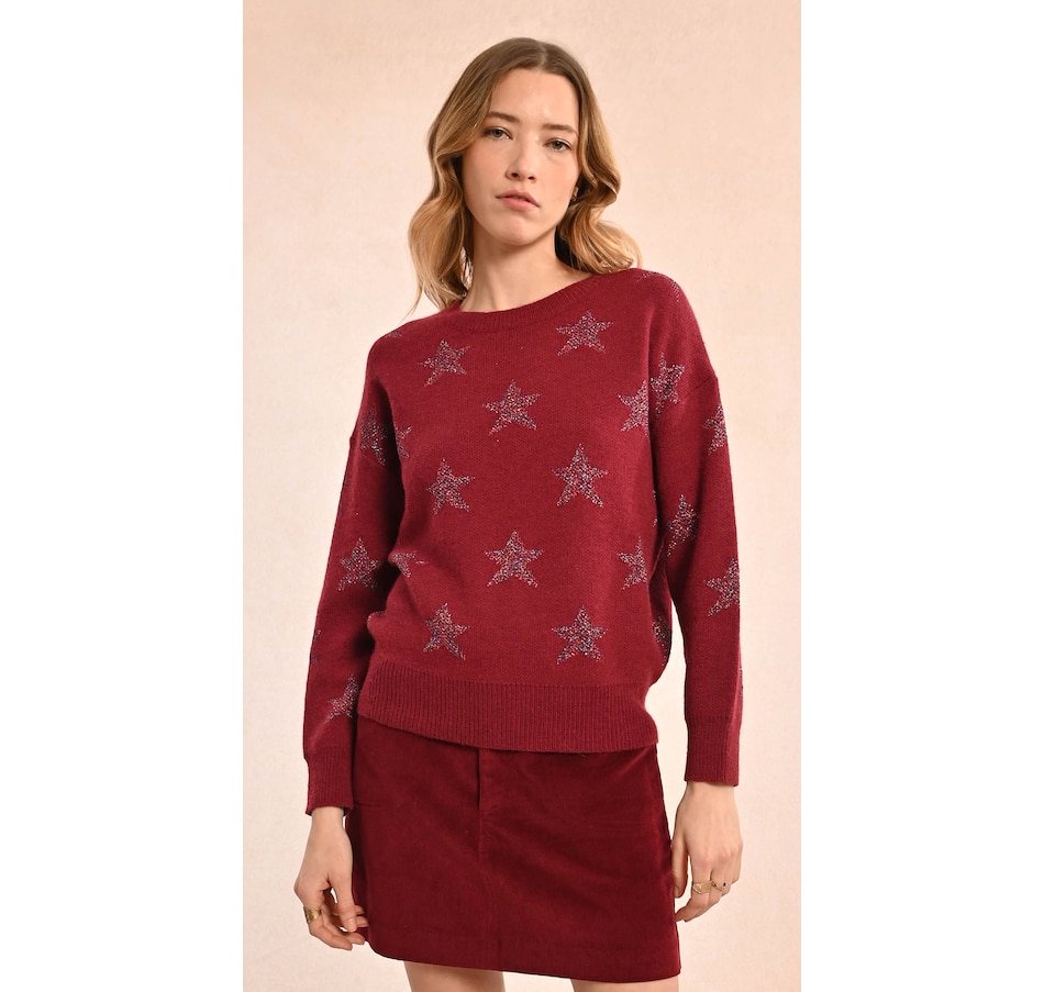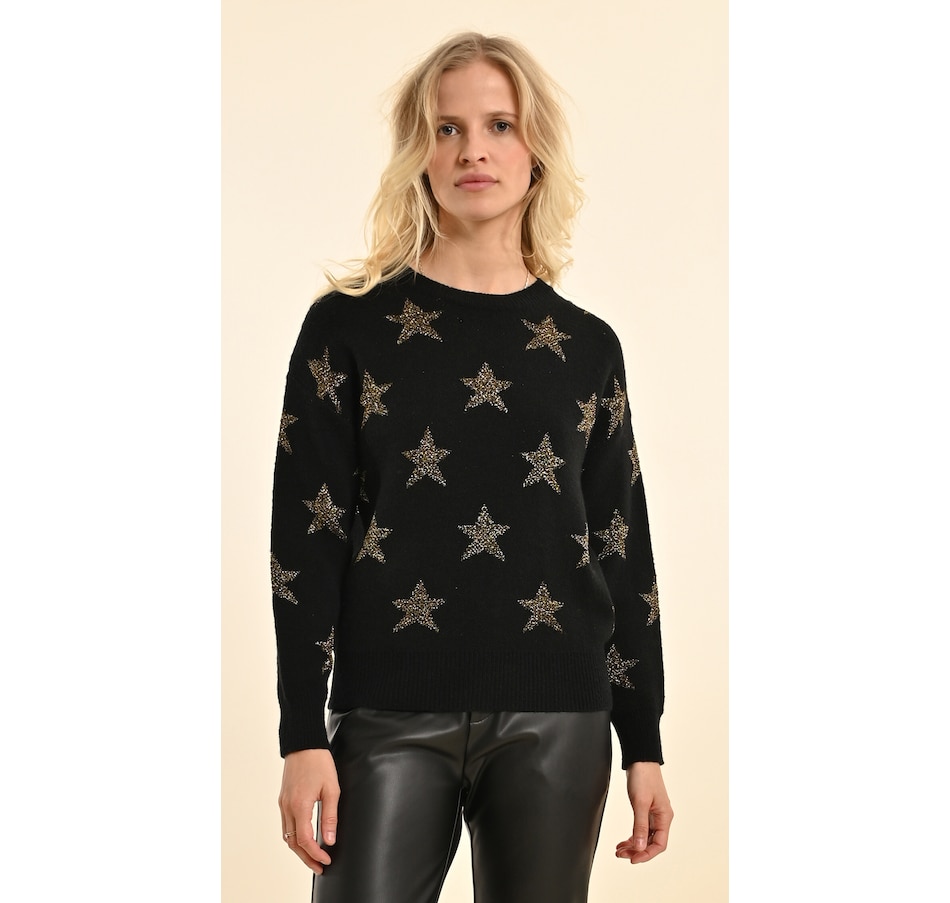 Bold and fun, you'll centre every look in dynamic style with this star crewneck sweater from Molly Bracken.