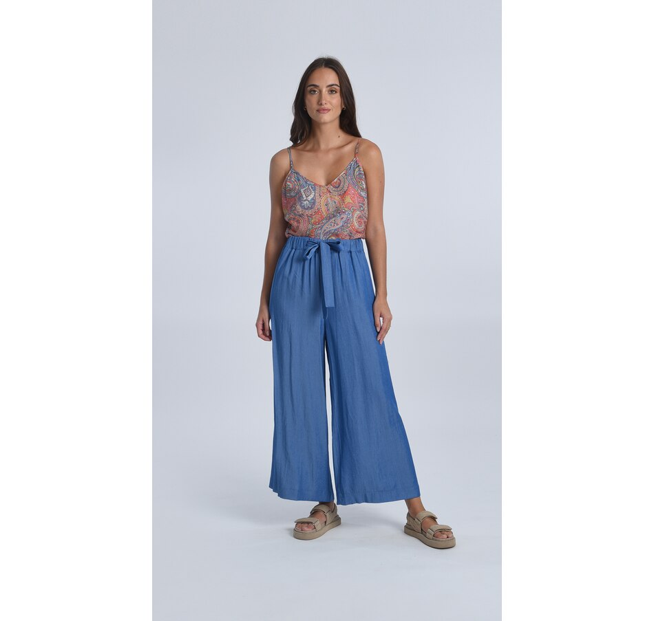 Finish your look in easy style with this tie front woven pant from Molly Bracken.