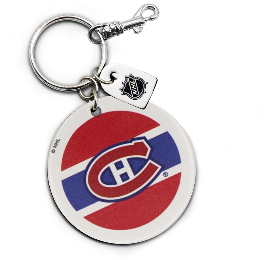 Show your support for your favourite NHL team -even when you're on the go- with this stylish leather round keychain. It is made in Canada, and of 100% genuine bovine leather. This is an officially printed licensed NHL product.