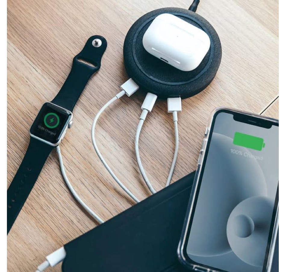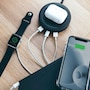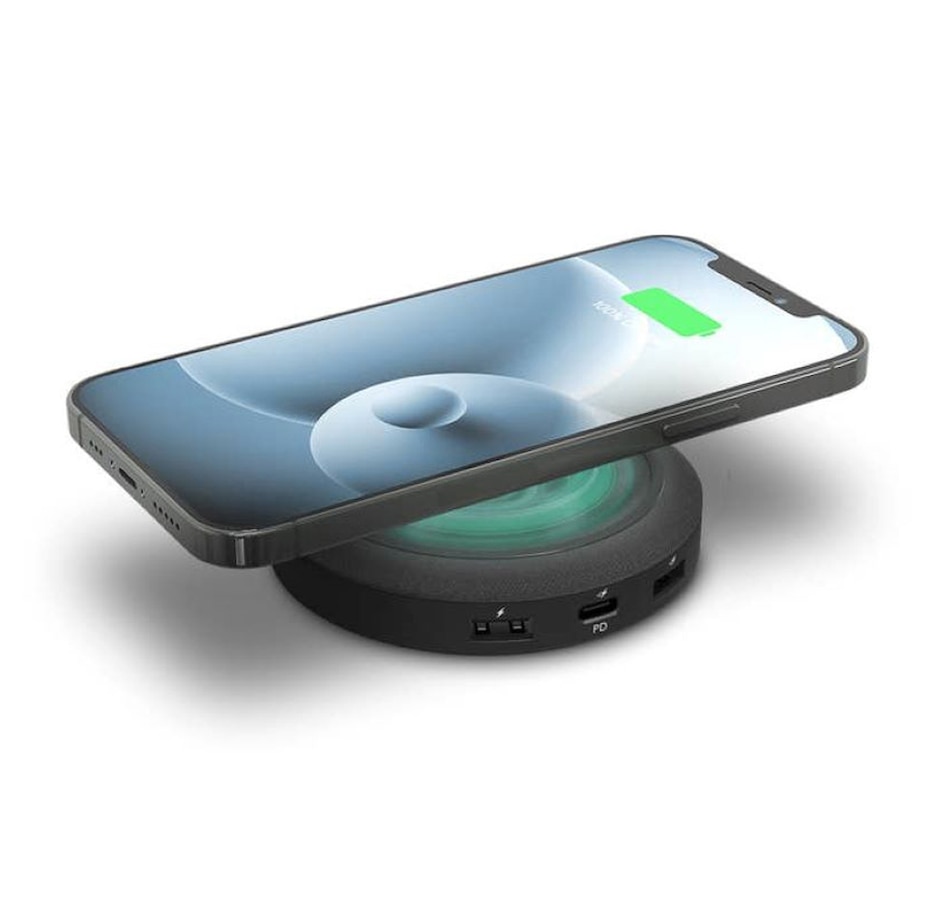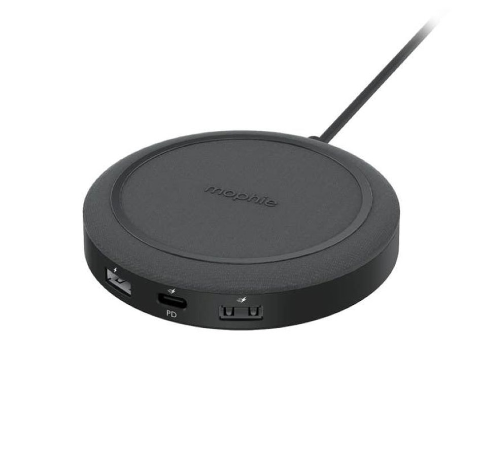The Mophie universal wireless charging hub features a wireless charging surface, two additional USB A ports, and one USB C port. You can wirelessly charge any Qi-enabled device on the top charging surface, and at the fastest speed your device can handle with the 20W USB-C Port. The Mophie wireless hub even wirelessly charges through cases up to 3mm thick.