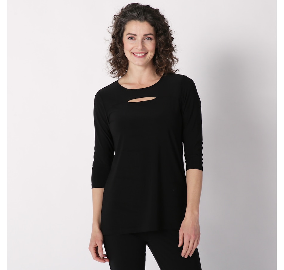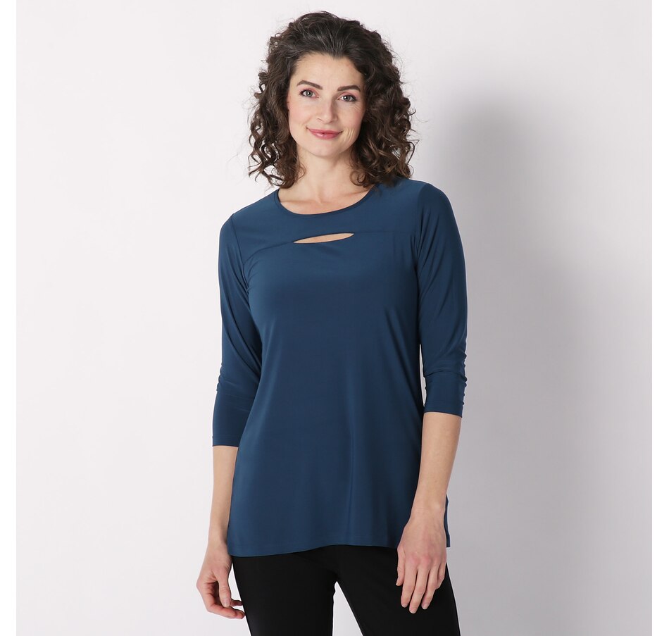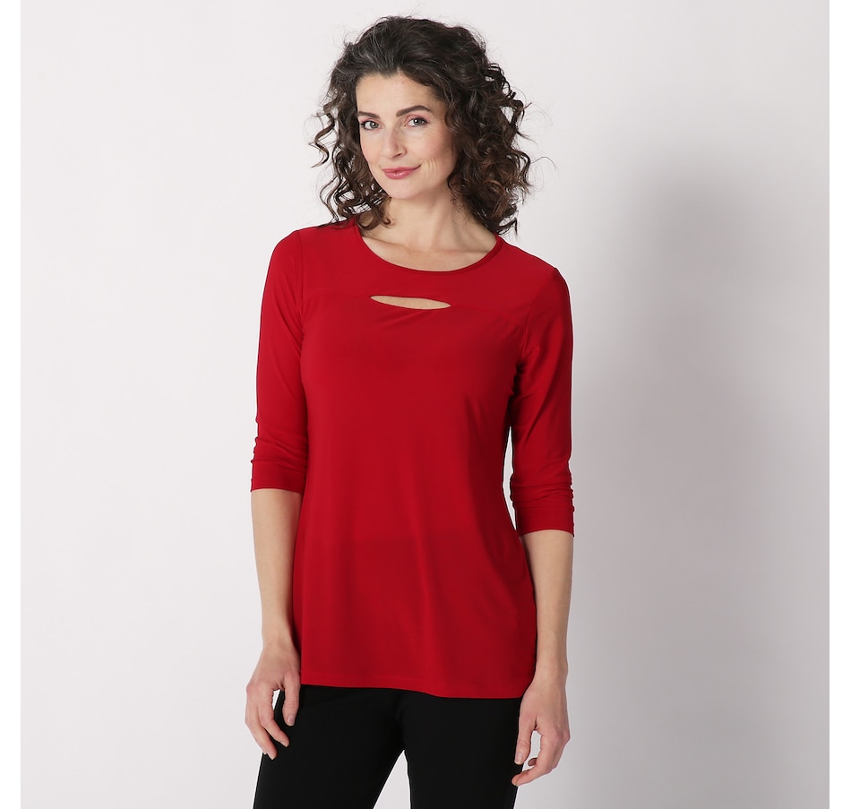 3/4 Sleeve Brazil Knit Peek-a-Boo Top