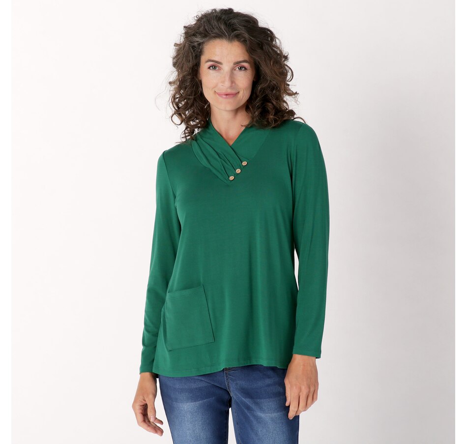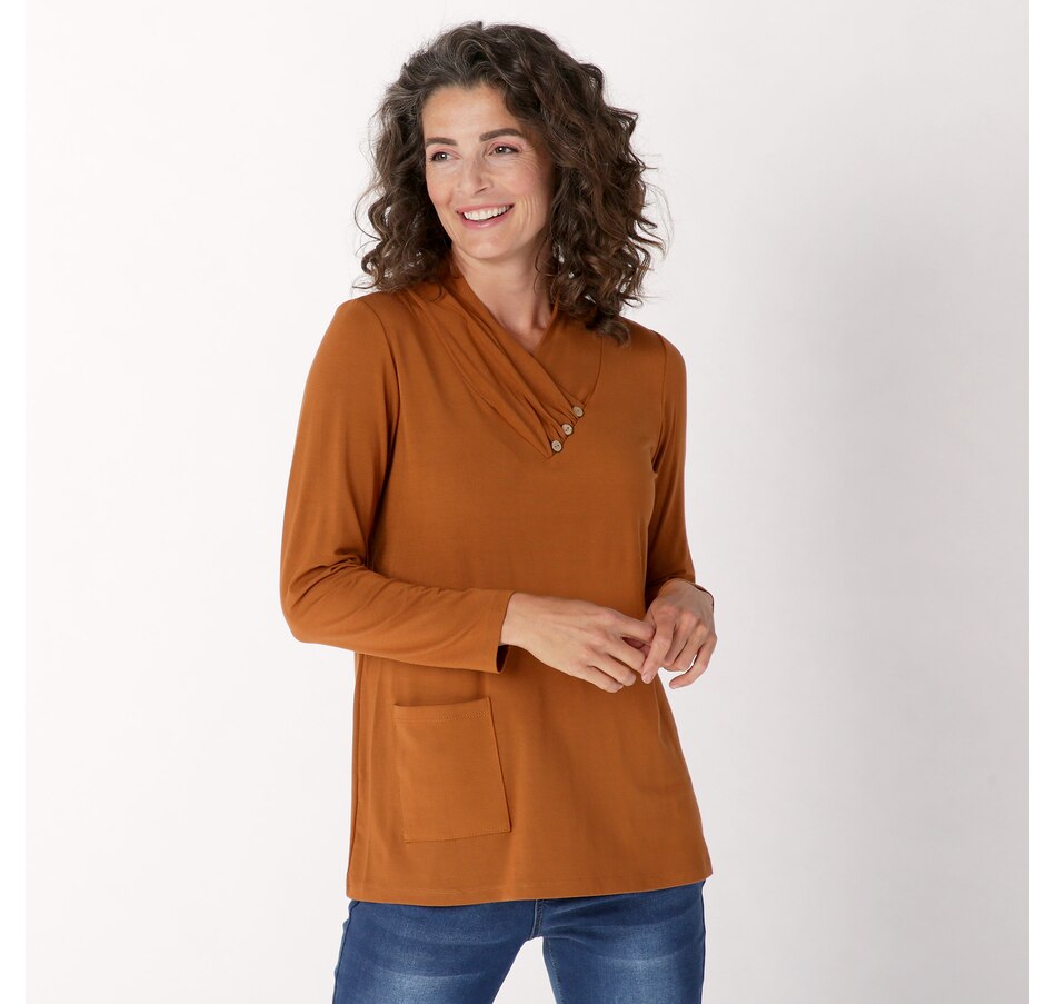 Finish your look in distinct style wearing this bamboo jersey tunic with button and pocket detail from Mr. Max.