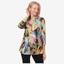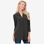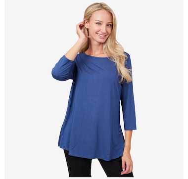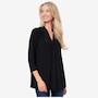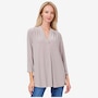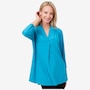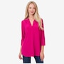 • Pleated shoulder detail, v-neck, 3/4 length sleeve