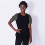 Centre your look in vibrant style wearing this Brazil knit top with limelight sequins sleeves from Mr. Max.
