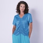 Lurex Rib V-Neck Top With Ruched Tie Detail