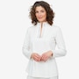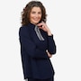 This top from Mr. Max features an invisible zipper framed by an embellished design, which gives it a refined sporty look that can be worn with the coordinating pants as an attractive leeisure look or as a casual look with your favourite jeans or pants.