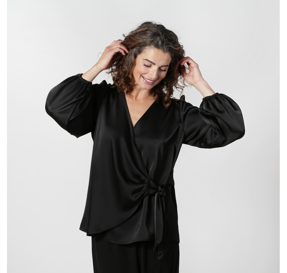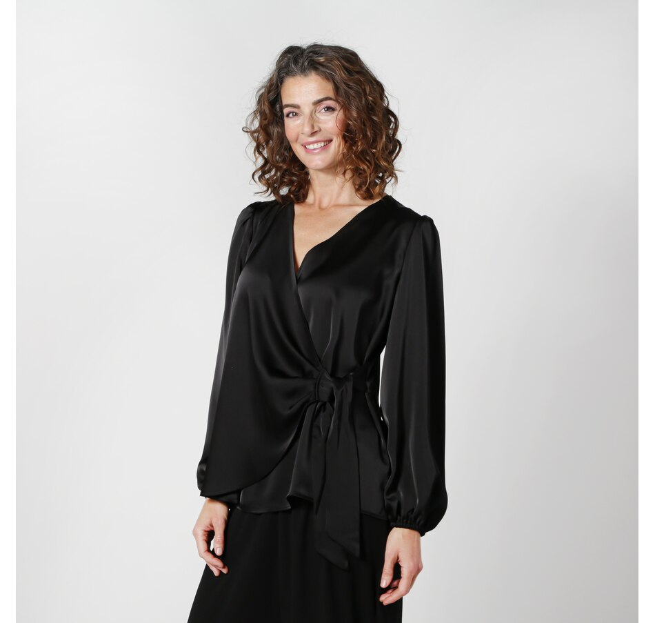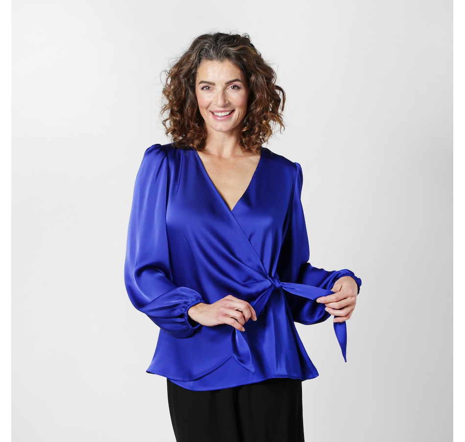 Centre your fall look in vibrant style wearing this satin wrap top from Mr. Max.