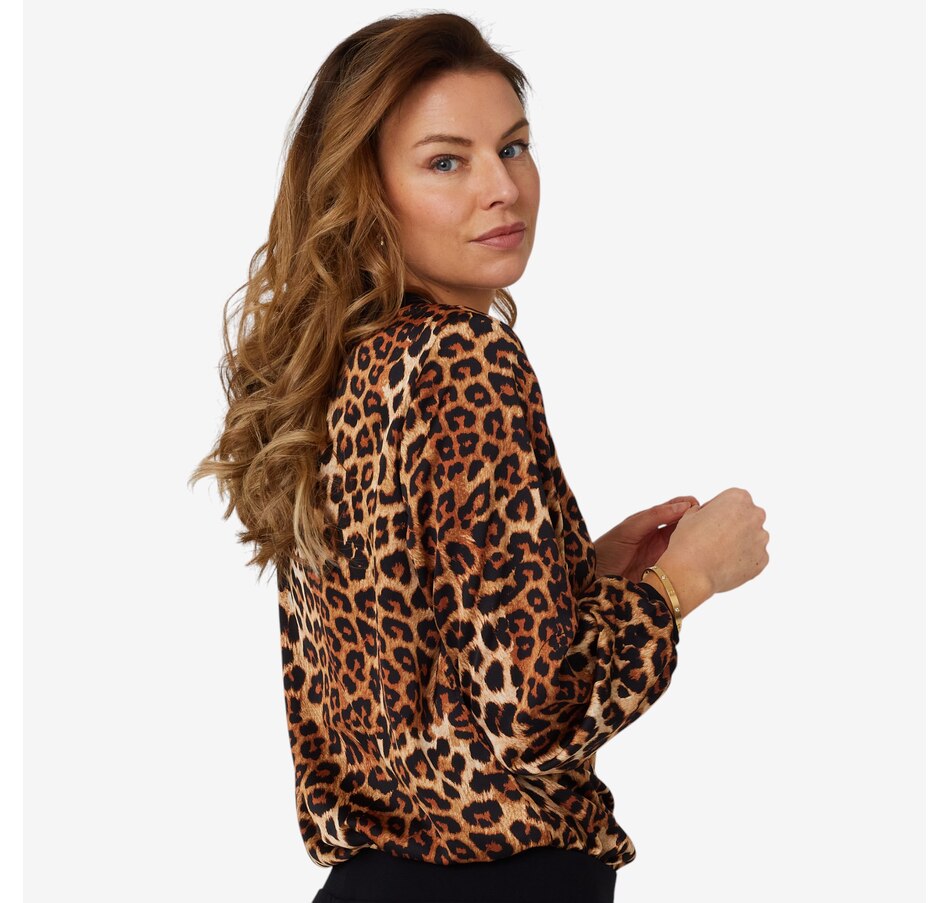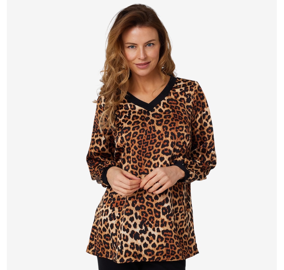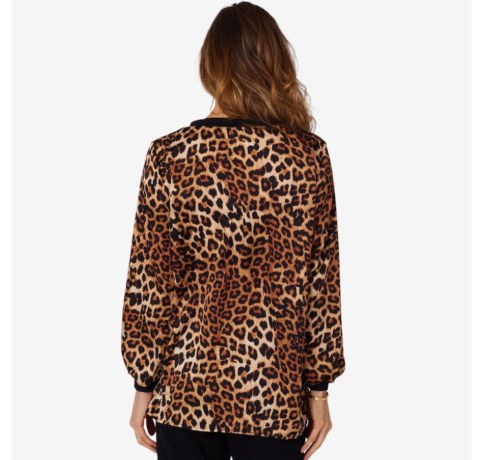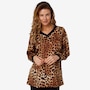 Add some vibrant energy to your look with this animal print crepe top from Mr. Max.