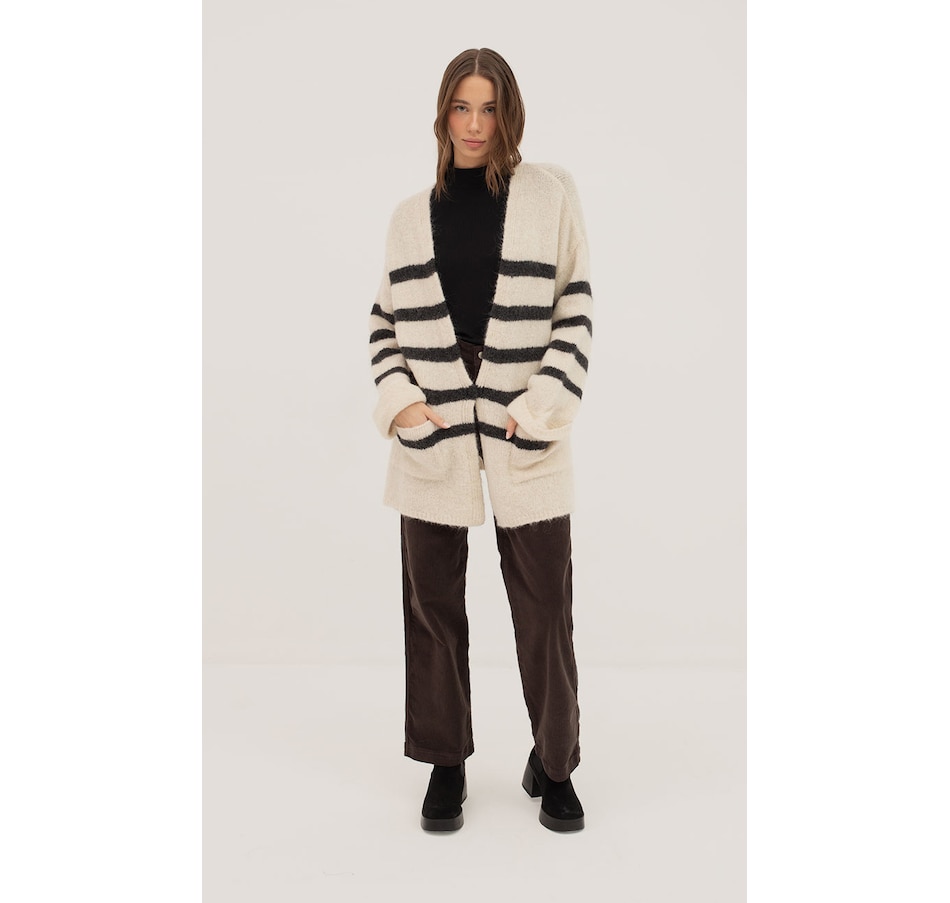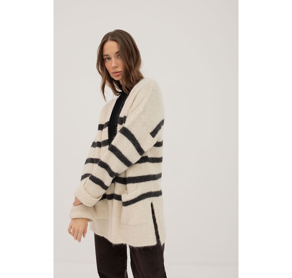 Finish your fall look in elevated, eye-catching style with this beautiful Nabao oversized striped cardigan from Mus & Bombon.