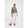 • Semi-fitted, contour waistband, zipper closure, mid-rise, beltloops