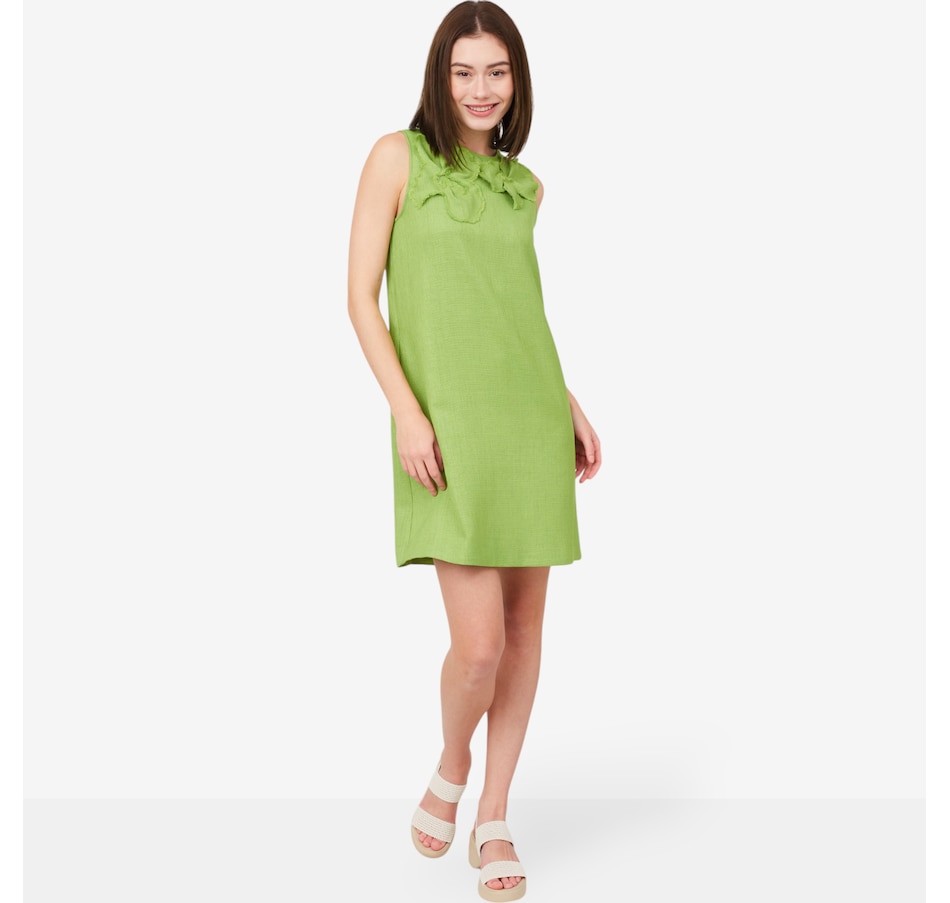 This beautiful dress from N Natori is made of a timeless, textured fabric that brings a refined, woven charm to any style. It also offers a floral embellishment on the neckline and a shift silhouette.