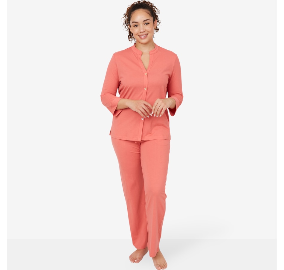 This beautiful cotton knit PJ button down set from N Natori is an easy-breezy, breathable basic you'll want to live in.