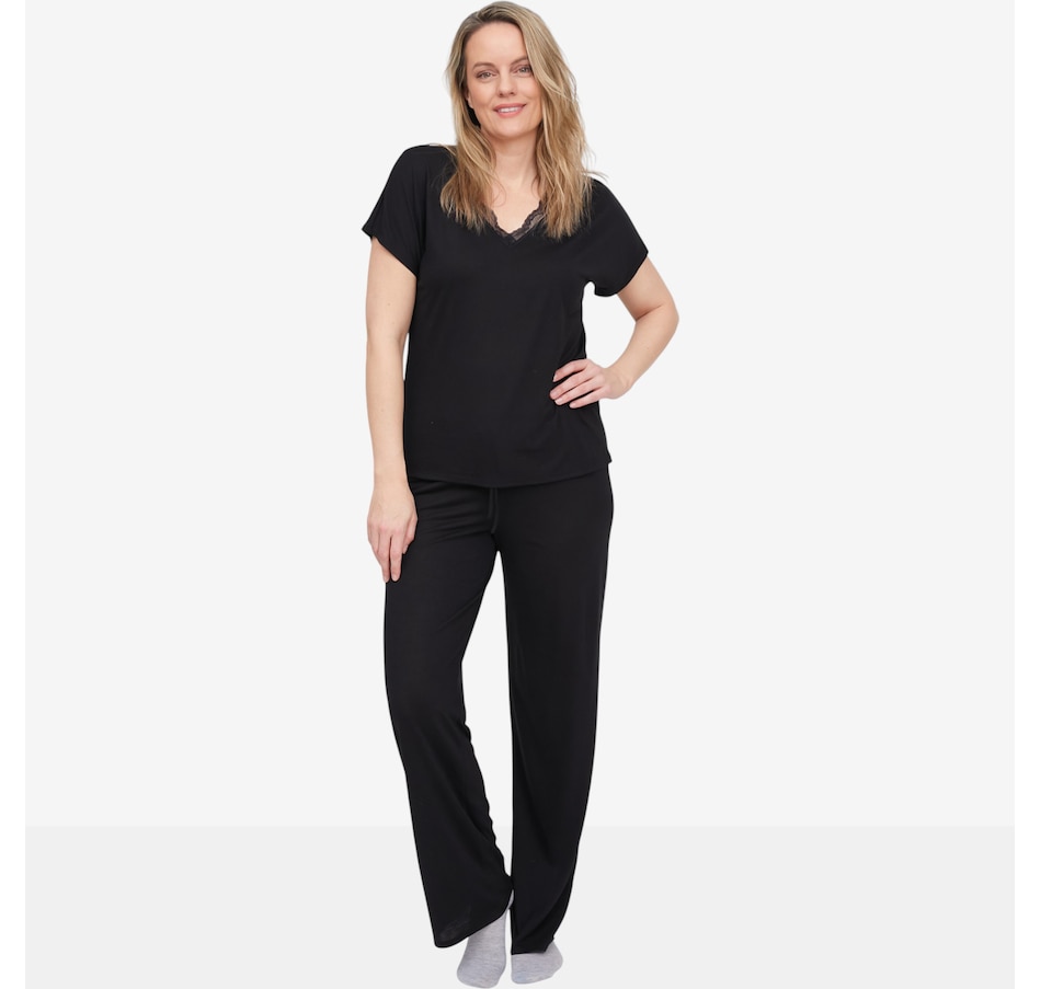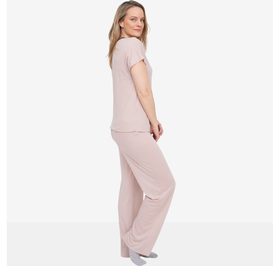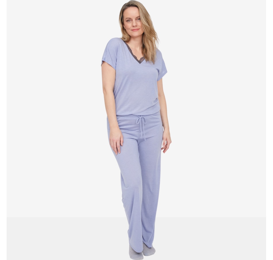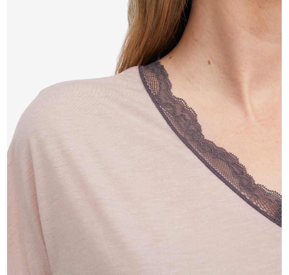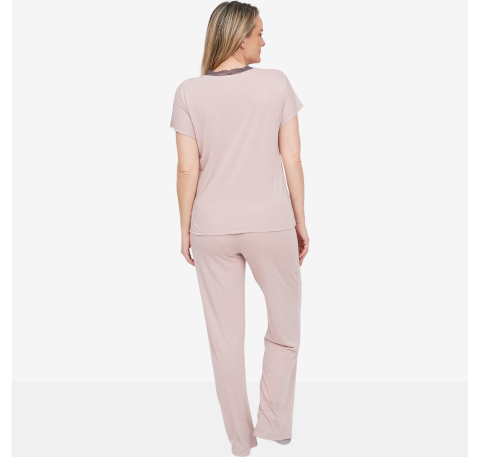Slip into pure comfort and feminine elegance with the N Natori Dahlia short sleeve PJ set. Crafted from a soft, fuzzy knit with just the right amount of stretch, this breathable set offers ideal comfort for winding down, waking up, or relaxing anytime in between. Delicate lace trim and soft fashion colours add a beautifully feminine touch, while standout crystal‑style buttons bring a subtle sparkle and vintage‑inspired charm. A refined collar and lightly relaxed fit give the set an elevated feel that flatters every body type; effortless to lounge in, polished enough to feel put‑together. Made from a durable knit blend that resists pilling and keeps its shape wear after wear, this set delivers comfort, confidence, and timeless style in every cozy moment.