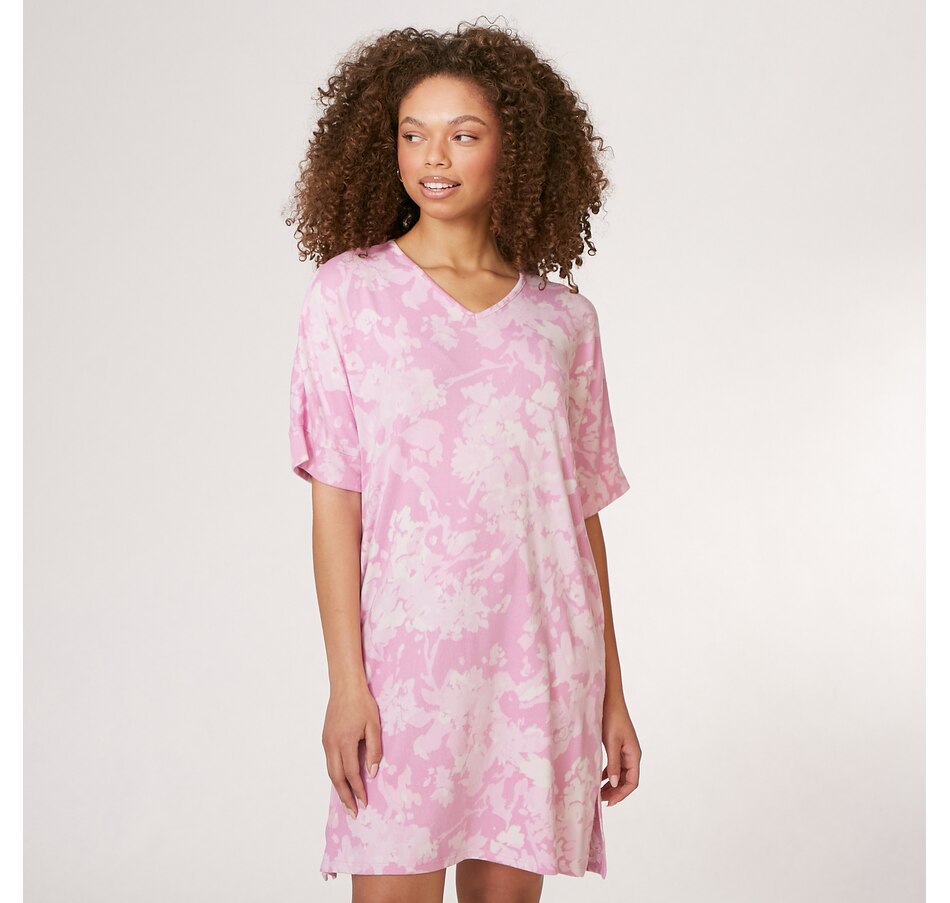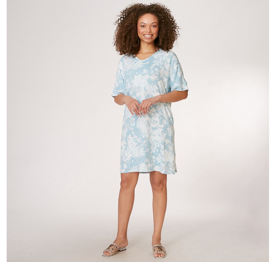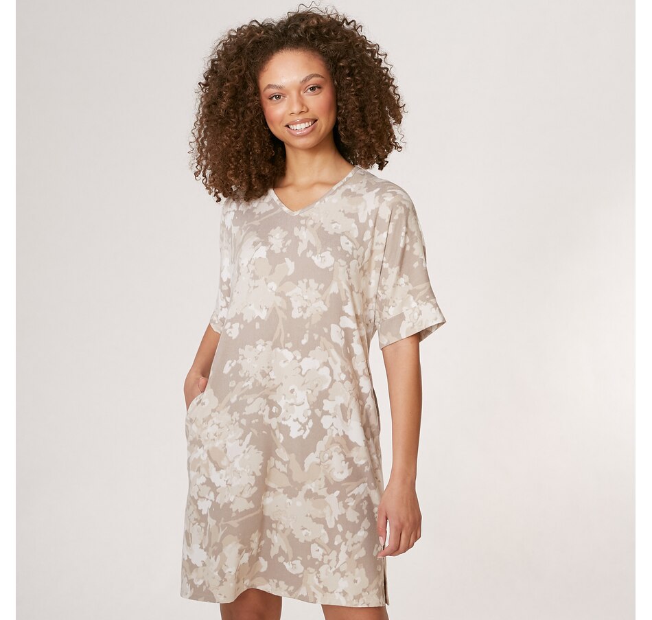 • Camouflage printed, V-neck, short sleeves, bottom hemline slits on side