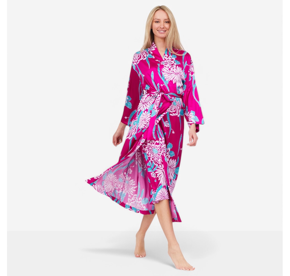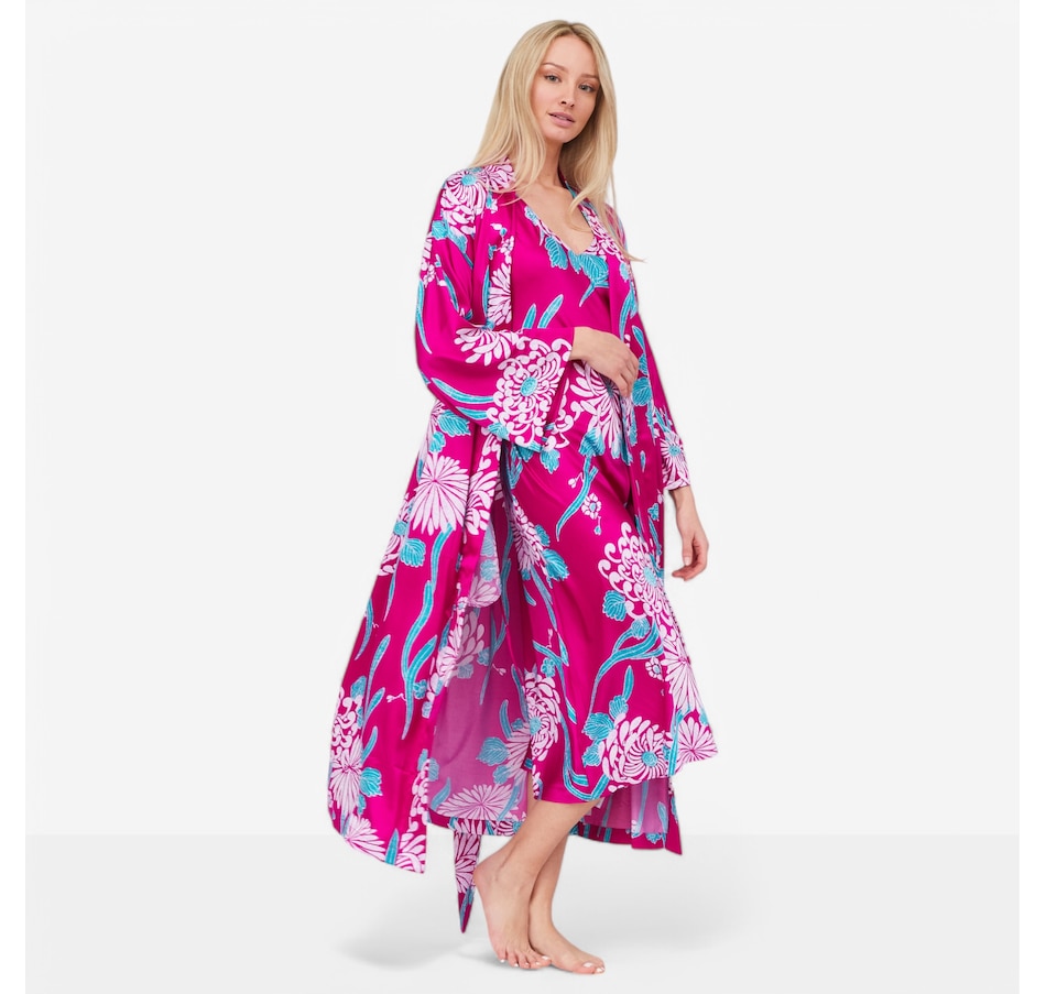 The Obi robe from N Natori is designed with a beautiful floral print, and available in a pair of delightful colours.