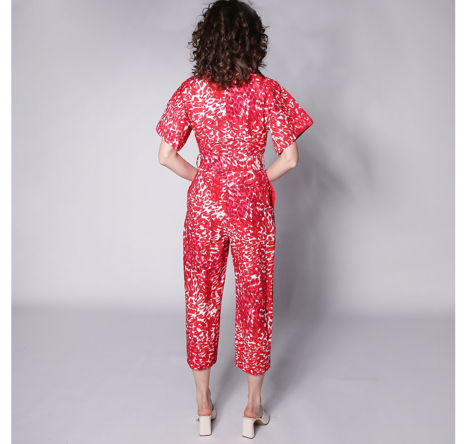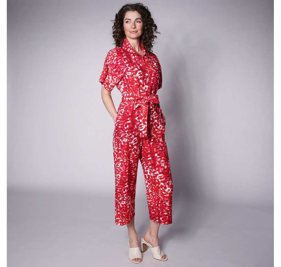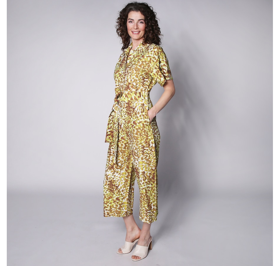 You'll centre every look in defined style whenever you wear this button up jumpsuit from N Natori. Printed on a high-stretch woven fabric, you're going to love the effortless elegance that comes from this chic women's jumpsuit, perfect for any occasion..