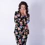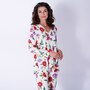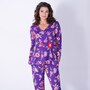 • Floral/dragon printed, long sleeves, v-neckline, high-low hemline, drawstring waistband, straight leg pant