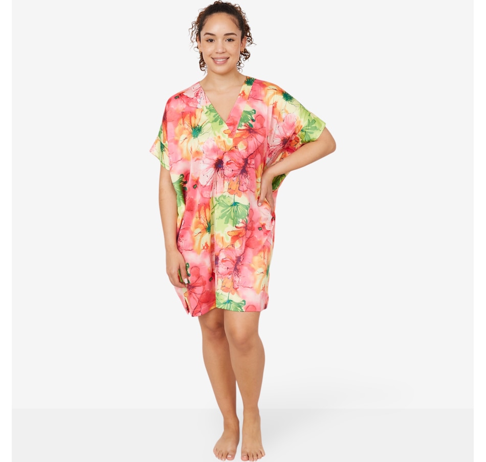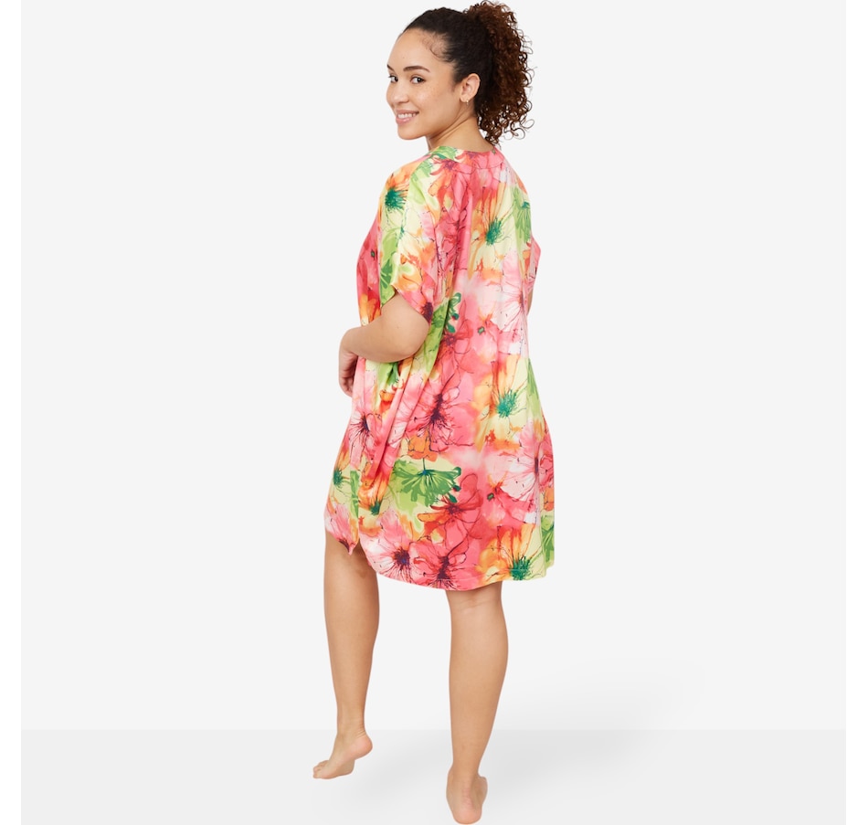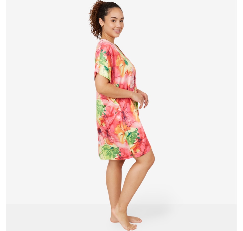 This beautiful Radiance sleep shirt from N Natori features a floral print on a luxurious stretch silky satin.