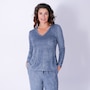 This fabulous Unwind feathered chenille swing lounge top from N Natori is exceptionally soft and cozy. It is designed with classic long sleeves and a v-neckline for a universal look.