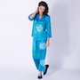 This fabulous Venetian stretch silky satin PJ set from N Natori features an attractive floral printing finish. The top is designed with a Mandarin collar and 3/4 length sleeves with slits, and the wide leg bottom has a classic drawstring waistband closure.