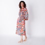 • Relaxed fit, floral print, 3/4 sleeves, tie-belted, outer closure, tie inner closure