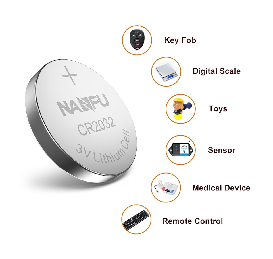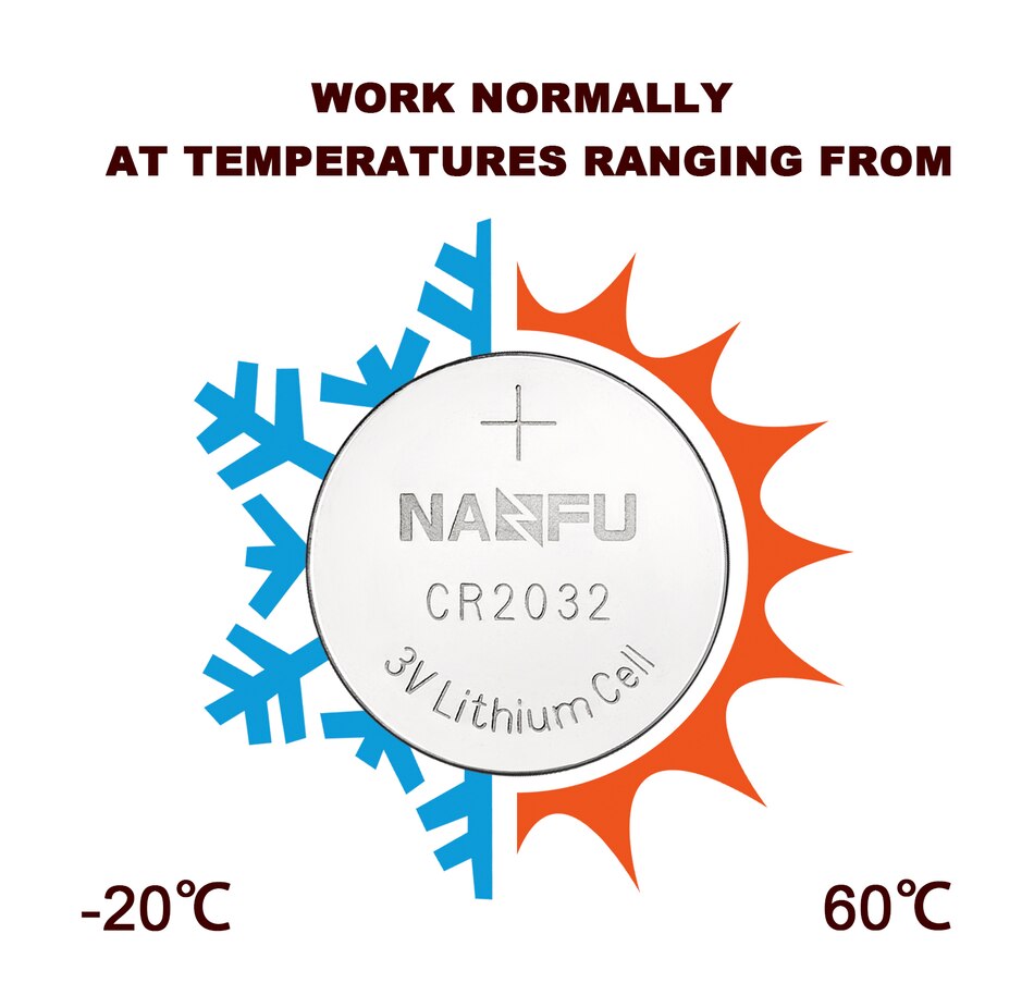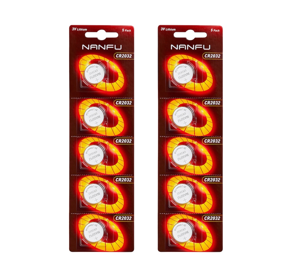 NANFU Battery, starting from 1954, is the third-largest alkaline battery manufacturer and supplier in the world. We have a strong sense of social responsibility. We pay close attention to environmental protection and put plenty of scientific research strength into it. Major pollutants like mercury and lead have been cleared from our battery products, allowing them to be disposed of together with household waste. These 10 pack CR2032 batteries can be stored so that you always have some on hand. Built to last with an impressive 5-year shelf life so you're never left powerless. Designed to work normally in low temperatures between -20℃ to 60℃. When it comes to making them last longer, we never stop. Suitable for any household devices that require CR2032 batteries, i.e., key fob, digital scale, remote control, medical device, sensor, etc. They are the smart choice for both your family and for the environment.