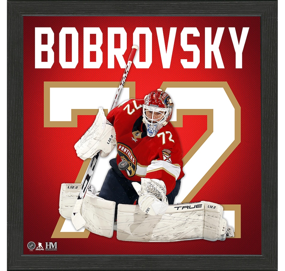 This one of a kind framed photo celebrates Florida Panthers star player Sergei Bobrovsky! This 13" x 13" frame features an action image of Bobrovsky in the goal superimposed over his respective jersey number with his name above. Officially licensed by the NHL and NHLPA, this product is proudly made in the USA by The Highland Mint!
