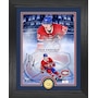This limited edition 13" x 16" frame features, in double matting and under glass, a hand numbered 8" x 10" custom photo print of Cole Caufield in multiple action poses, as well as his facsimile (replica) signature, combined with a 39mm minted team bronze coin. As a limited edition of only 5000 and officially licensed by the NHL and NHLPA, each photo mint is accompanied by a certificate of authenticity. This product is proudly made in the U.S.A. by The Highland Mint!