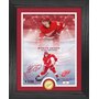 This limited-edition collectible frame is for the NHL’s best and brightest stars, featuring a custom designed photo combined with a minted coin. This 13" x 16" wood frame, with double matting and a glass front panel, features a hand numbered photo of Moritz Seider with his facsimile (replica) signature. The unique photo with two images is combined with a 39mm minted bullion bronze team coin. A limited edition of only 5000 and officially licensed by the NHL and NHLPA, each photo mint is accompanied by a certificate of authenticity, making this a true collectible. This product is proudly made in the USA by The Highland Mint!