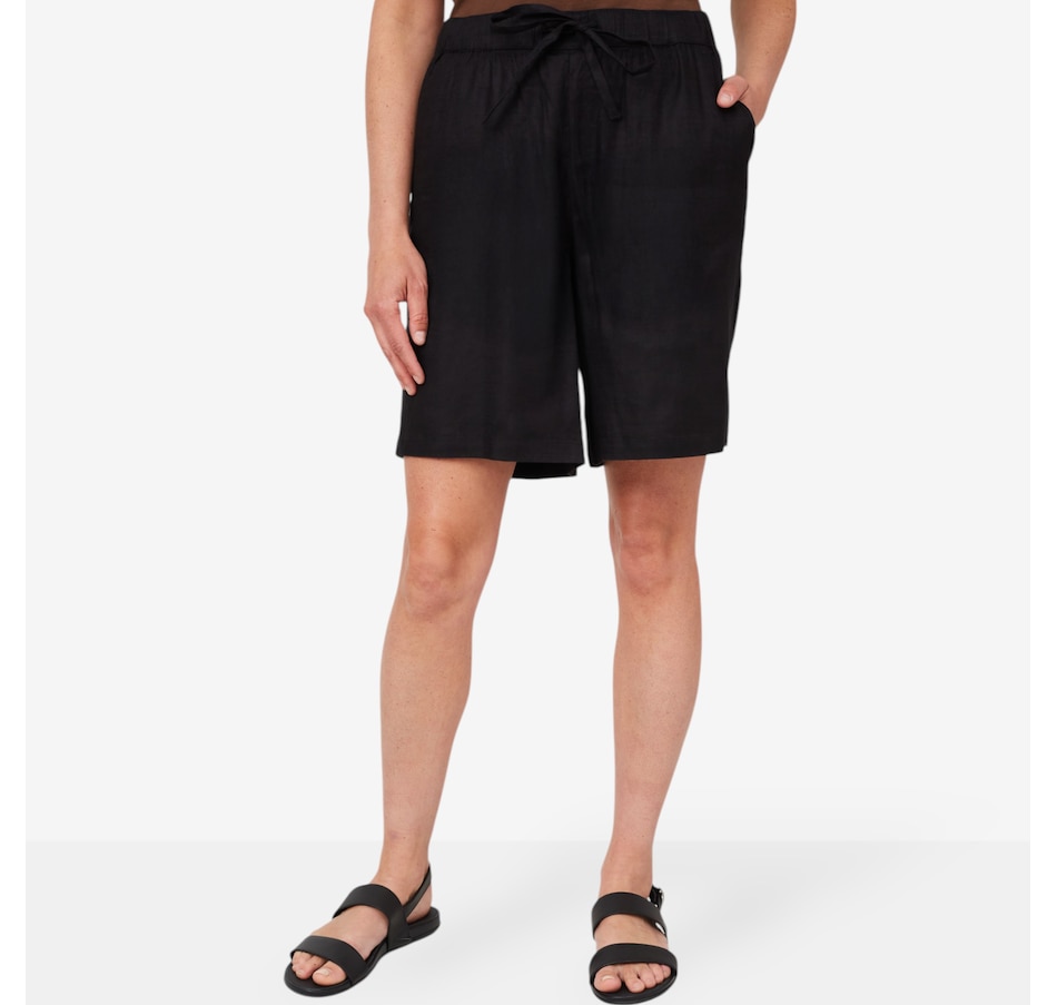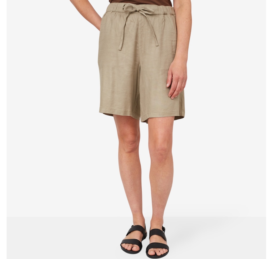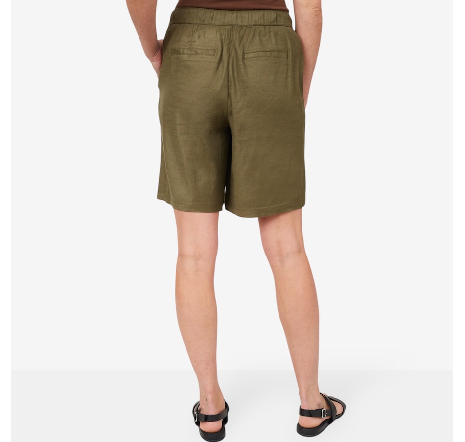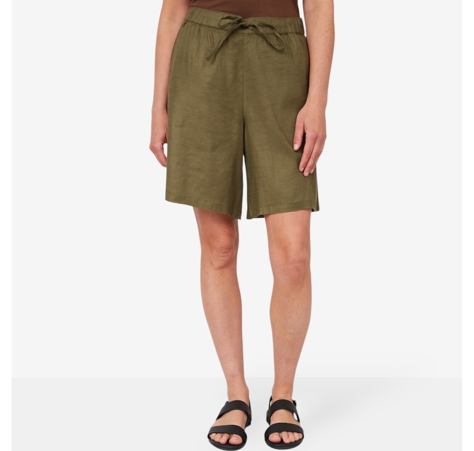 Hot days are a breeze in the Breezy Bermuda short from NYDJ! This stretch linen short has a light, airy feel made extra comfortable by a drawstring stretch waist. It finishes with front slash pockets and back welt details.