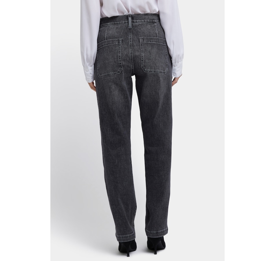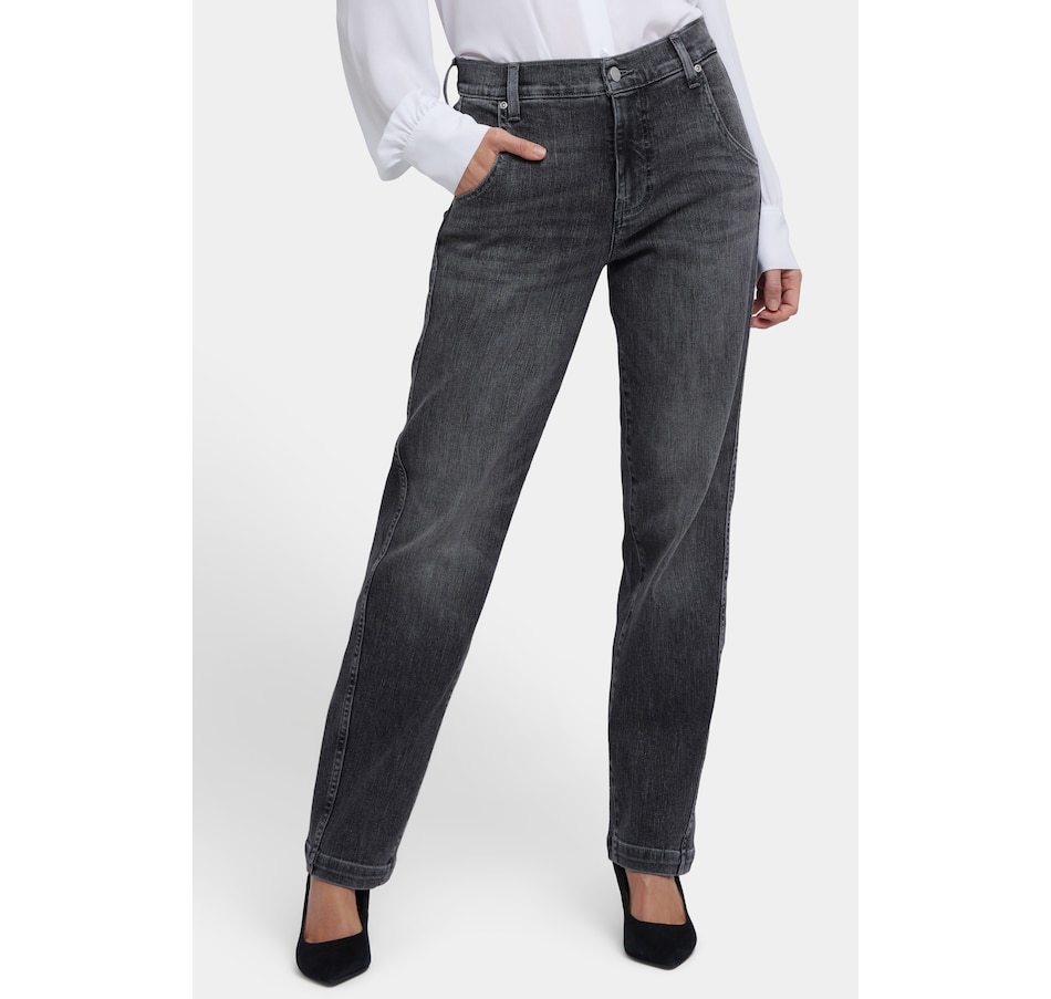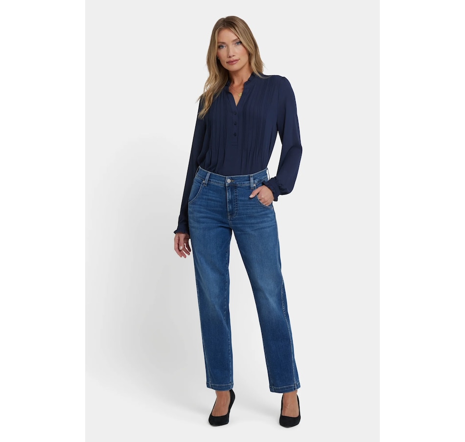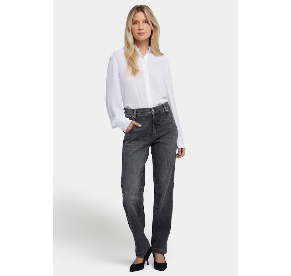 NYDJ's Brooke loose straight jean will make you look as good as you feel wearing it. This vintage-inspired jean features a relaxed straight fit through the legs and a curve-flattering high rise. It finishes with a four-pocket styling, zip fly and button closure. This jean is made with earth-friendly methods that result in reduced consumption of water, chemicals and/or energy.